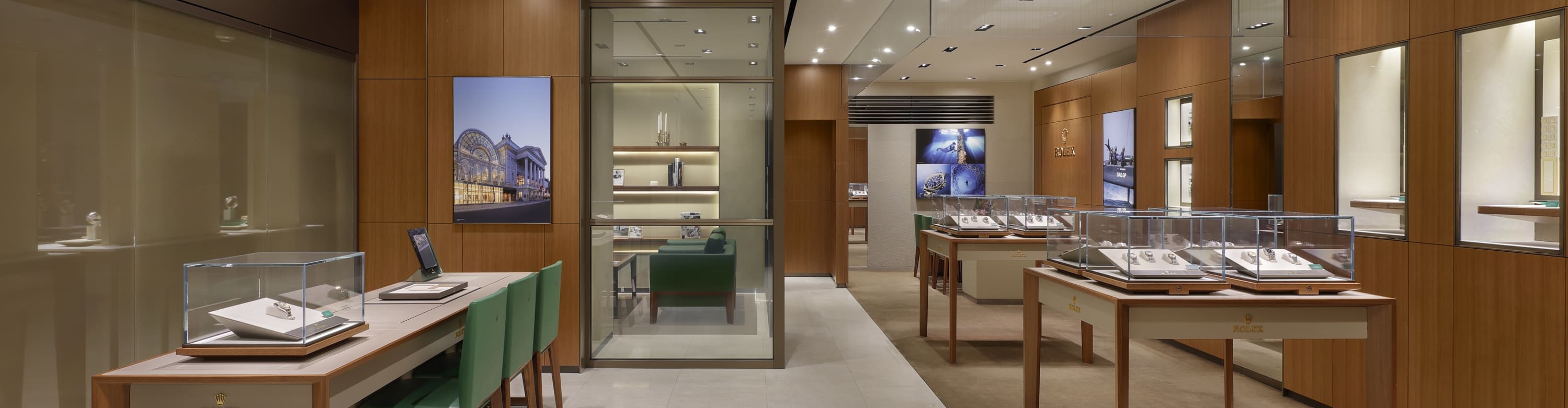 جُهّز متجرنا الحصري بالأثاث وزُيّن بالكامل بتصاميم داخلية مذهلة أبدعتها رولكس بجنيف في إشادة بالشراكة العريقة التي تجمع بين العلامة التجارية وROLEX BOUTIQUE