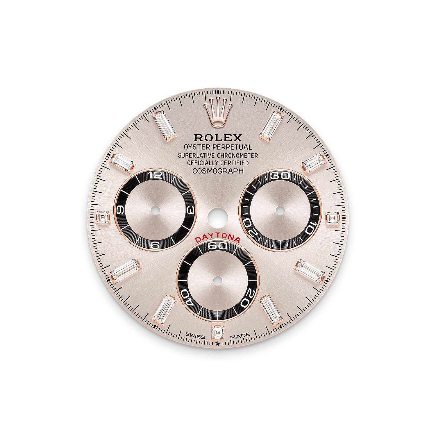 تتميز ساعة أويستر بربتشوال كوزموغراف دايتونا المصنوعة من ذهب إيفروز عيار ١٨ قيراطًا بمينا رملي، مُرصّع بالألماس وحلقات عداد متباينة وسوار أويسترفلكس، بالإضافة إلى إطار مُرصّع بالألماس وقضبان مرصعة بالألماس.