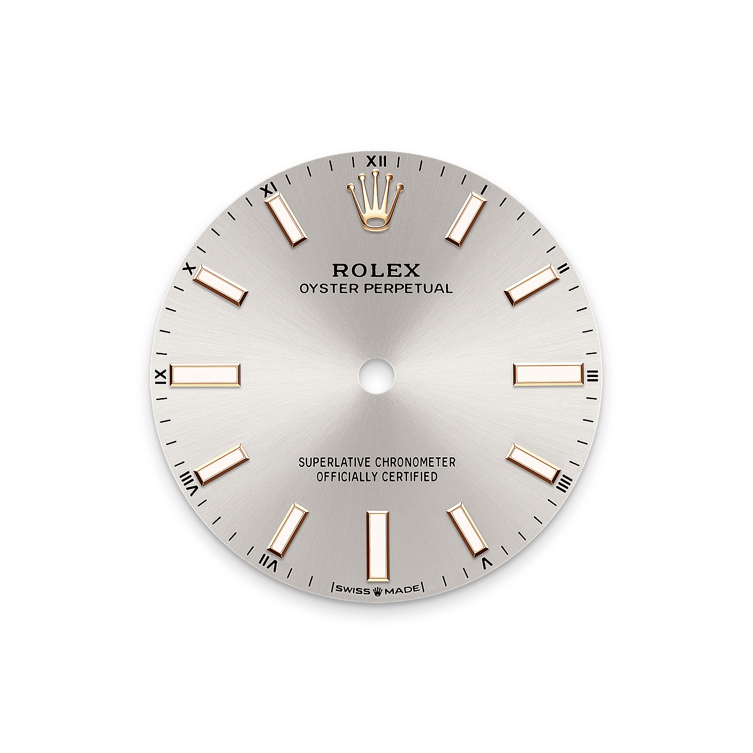 ينعكس الضوء بالتساوي على طول النقوش، مما يخلق توهجًا خفيًا مميزًا يتحرك وفقًا لموضع المعصم. بمجرد الانتهاء من التشطيب الشمسي، يتم صياغة لون المينا باستخدام تقنية الترسيب الفيزيائي للبخار (PVD) أو بتقنية الطلاء المعدني الكهربائي. وبعدها، يعمد خبير رولكس إلى وضع طبقة خفيفة من طلاء الورنيش التي تضفي على المينا مظهره النهائي.