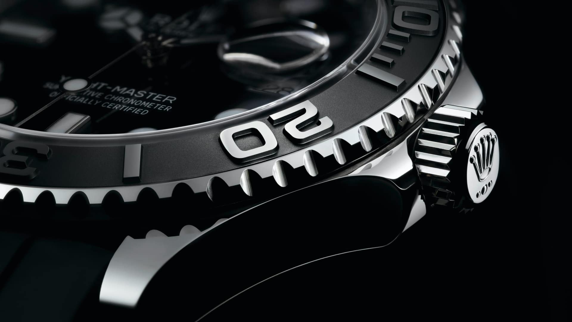 صُنع إطار ساعة يخت ماستر الدوّار باتجاهين والمُدرّج بـ ٦٠ دقيقة بالكامل من معدن ثمين – ذهب إيفروز أو البلاتين – أو جُهّز بترصيعة سيراكروم من السيراميك عالي التقنية، حسب الإصدار. تبرز الأرقام والتدرجات النافرة والمصقولة بوضوح على خلفيةٍ مضروبةٍ بالرمل وغير لامعة.