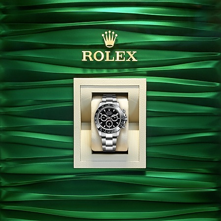 Oyster Perpetual Cosmograph Daytona in Edelstahl Oystersteel. Zifferblatt: Schwarz. Armband: Oyster-Band. Lünette: Schwarzes Cerachrom mit eingravierter Tachymeterskala.