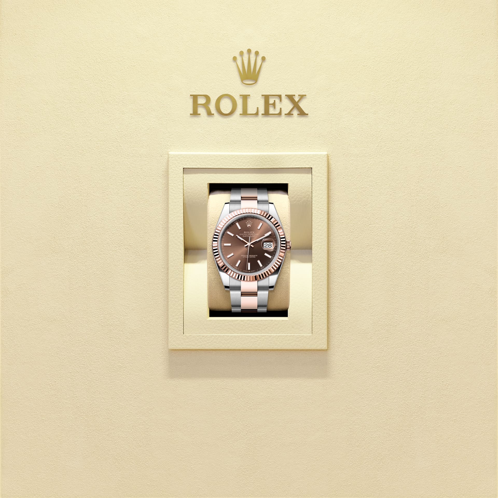 Oyster Perpetual Datejust 41 in Edelstahl Oystersteel und Everose-Gold. Zifferblatt: schokoladenfarben. Armband: Oyster.