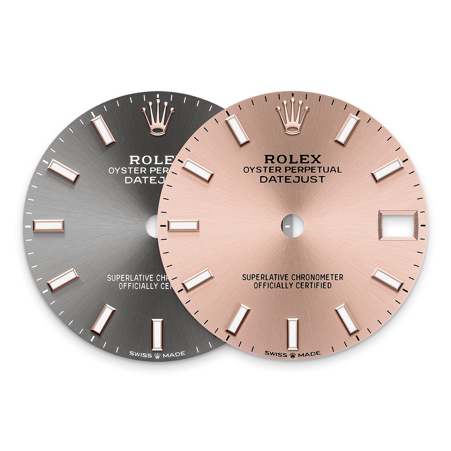 Licht fließt an jeder Einkerbung entlang und schafft damit einen charakteristischen subtilen Schimmer, der sich mit der Bewegung des Handgelenks verändert. Sobald der Radialschliff abgeschlossen ist, wird die Farbe anhand des PVD-Verfahrens (Physical Vapour Deposition, physikalische Gasphasenabscheidung) oder der Galvanoplastik auf das Zifferblatt aufgetragen. Eine dezente Lackierung verleiht dem Zifferblatt sein vollständiges Erscheinungsbild.