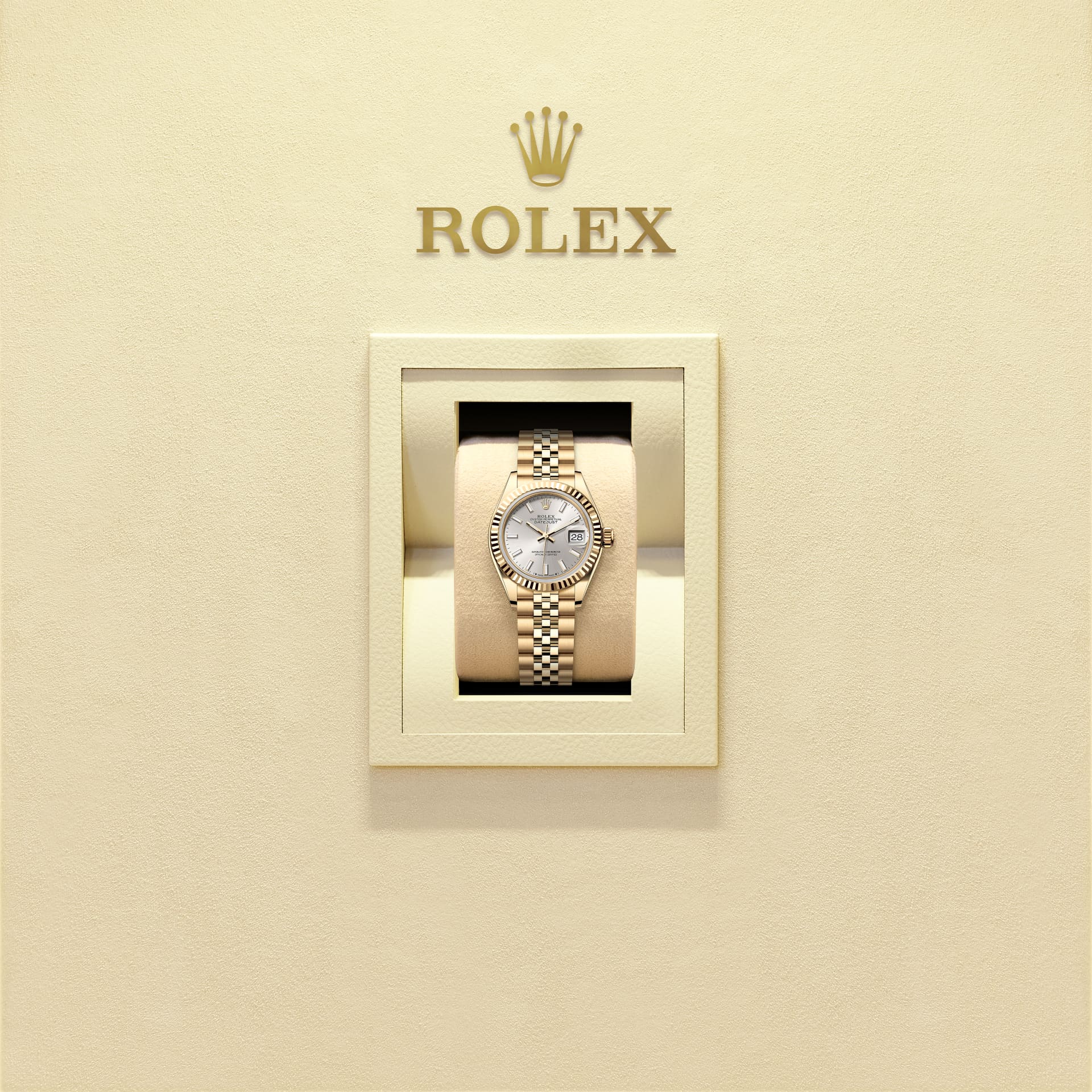 Die Riffelung entsprach deshalb der des Gehäusebodens, der ebenfalls mithilfe von Rolex Spezialwerkzeugen mit dem Gehäuse verschraubt wurde, um die Uhr wasserdicht zu machen. Mit der Zeit erhielt die Riffelung eine rein ästhetische Funktion und wurde zu einem prägenden Element des stilistischen Markenerbes von Rolex. Heute ist die geriffelte Lünette ein Distinktionsmerkmal, das bei dieser Lady-Datejust in Gold gefertigt wird.
