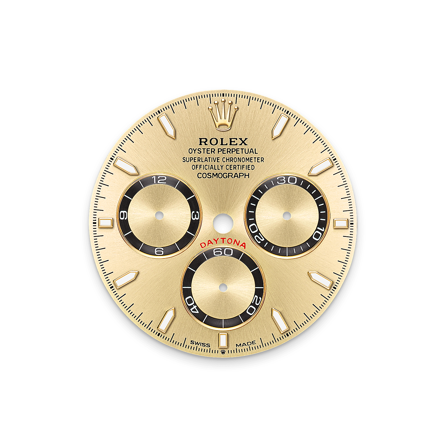 The Oyster Perpetual Cosmograph Daytona in Oystersteel and yellow gold with a golden dial and contrasting counter rings. It features an Oyster bracelet and a yellow gold bezel with an engraved tachymetric scale.