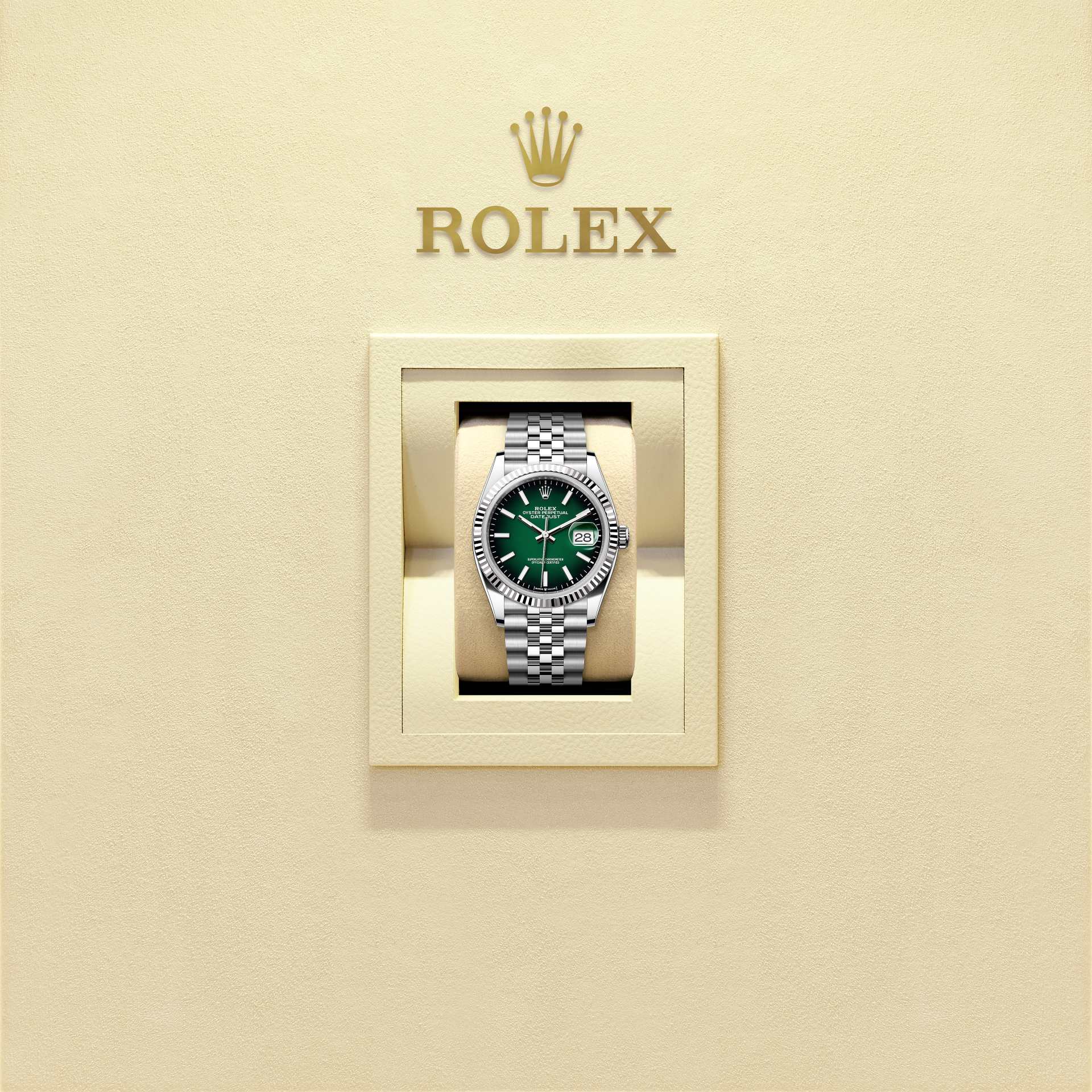 And, as with all the components of the watch, aesthetic controls by the human eye guarantee impeccable beauty. The Jubilee, a supple and comfortable five-piece link metal bracelet, was designed and made especially for the launch of the Oyster Perpetual Datejust in 1945.