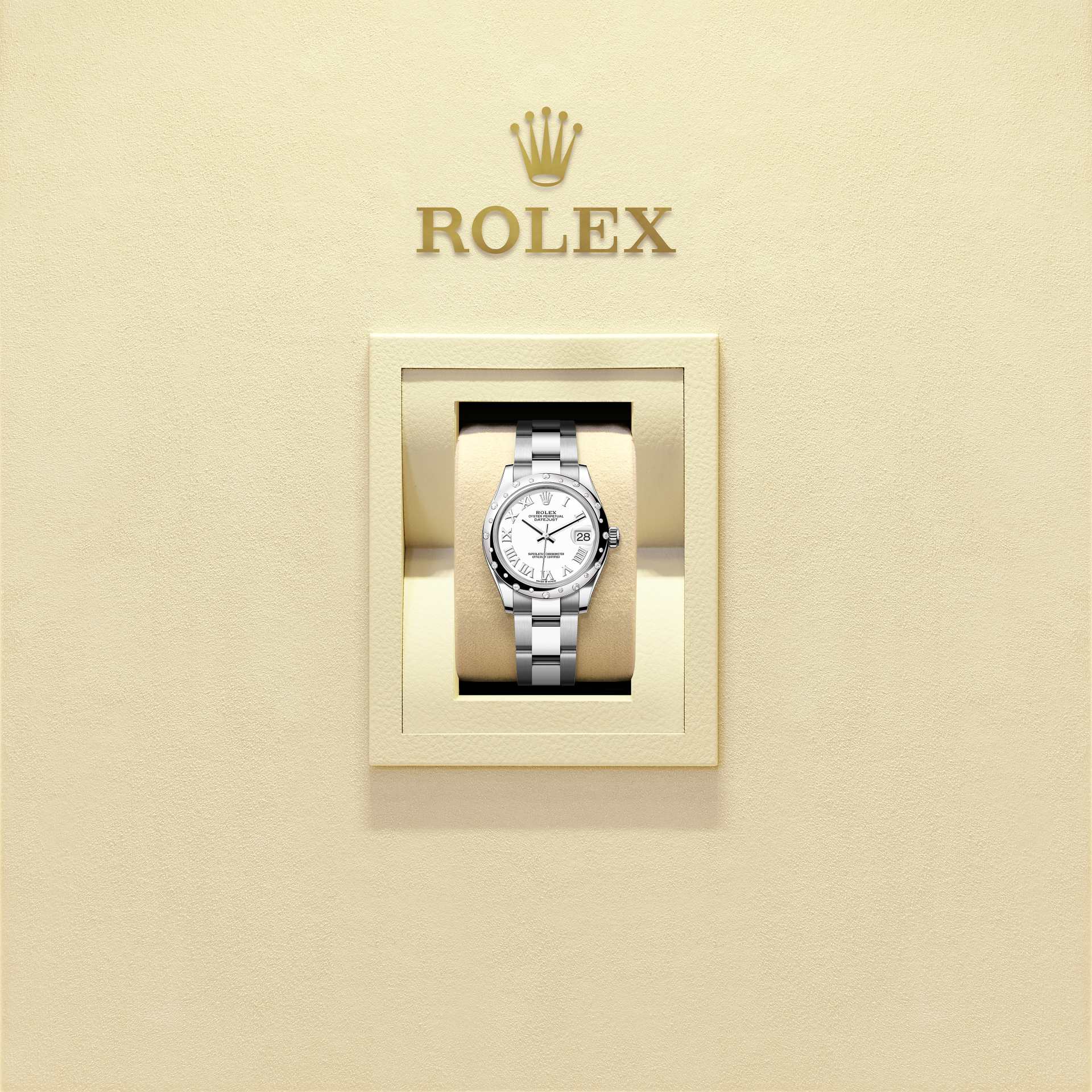This Oyster Perpetual Datejust 31 in Oystersteel and white gold features a white dial and an Oyster bracelet.