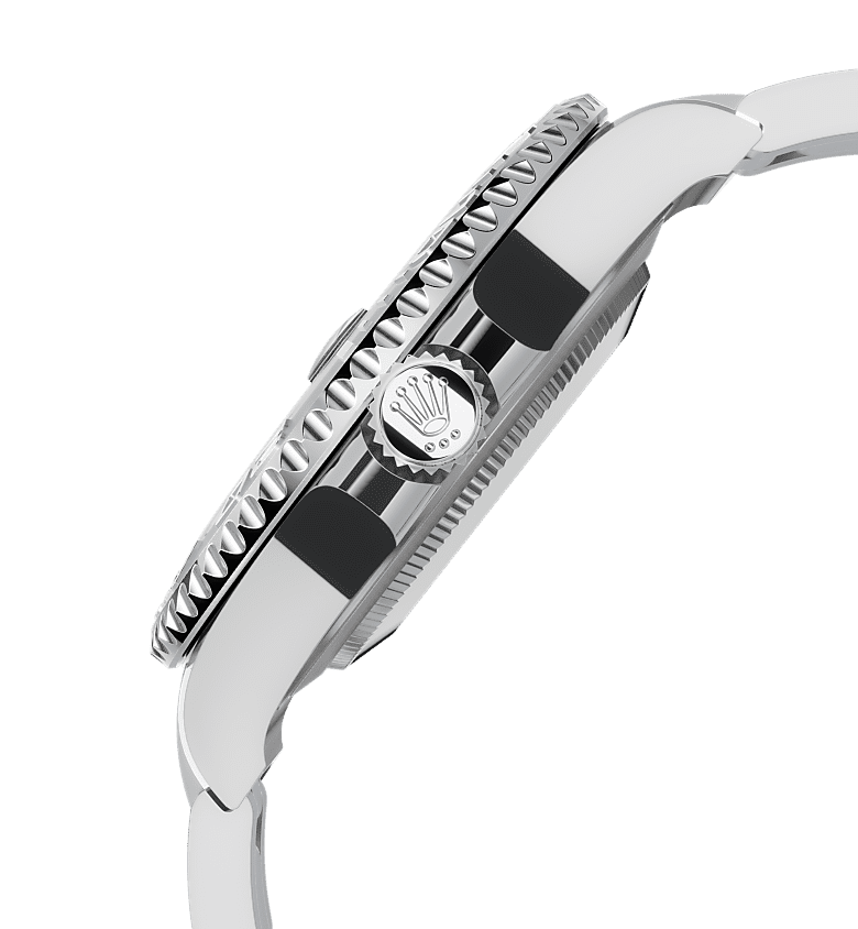 While the case and bracelet are in rugged Oystersteel, the bezel of the Rolesium versions is made of platinum, imparting a silvery whiteness and vibrant luminosity for an unmistakable sense of luxury.