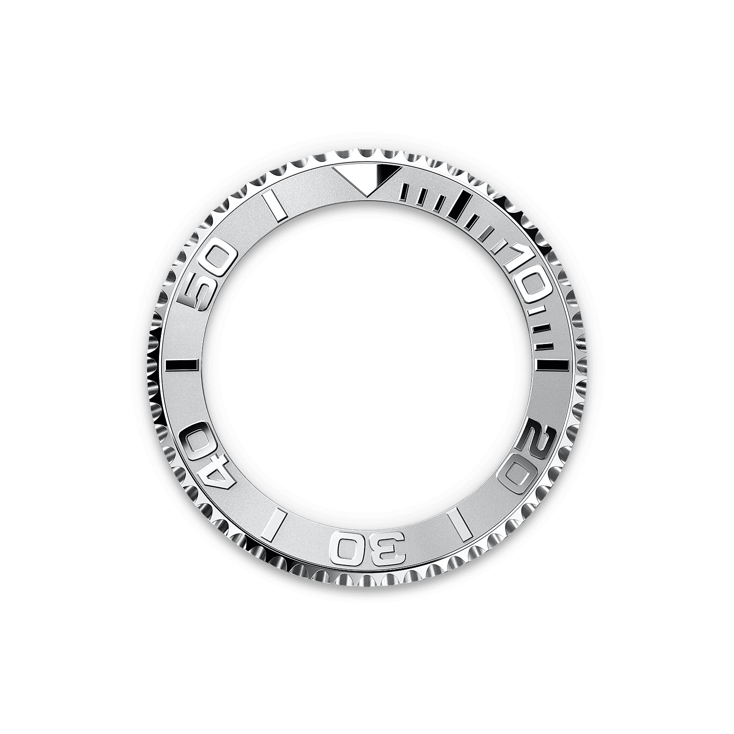 The Yacht-Master’s bidirectional rotatable 60-minute graduated bezel is made entirely from precious metal – Everose gold or platinum – or fitted with a Cerachrom insert in high-tech ceramic, depending on the model. The raised polished numerals and graduations stand out clearly against a matt, sand-blasted background.