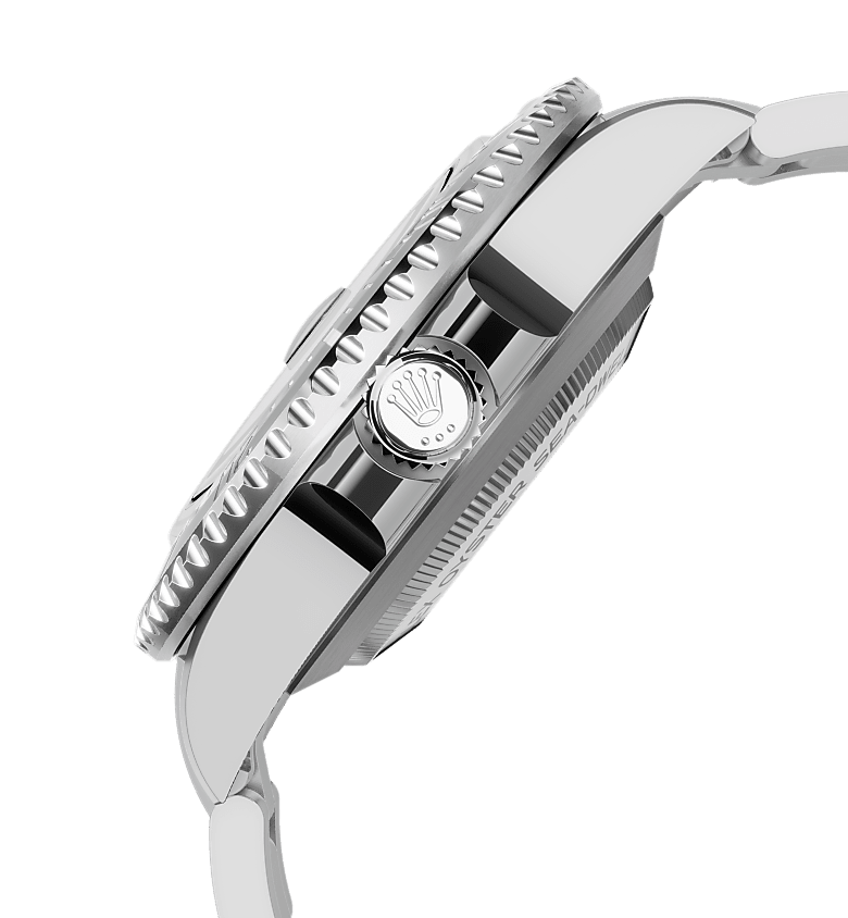 The 60-minute graduated, unidirectional rotatable bezel of the Sea-Dweller enables divers to precisely and safely monitor their dive and decompression times.