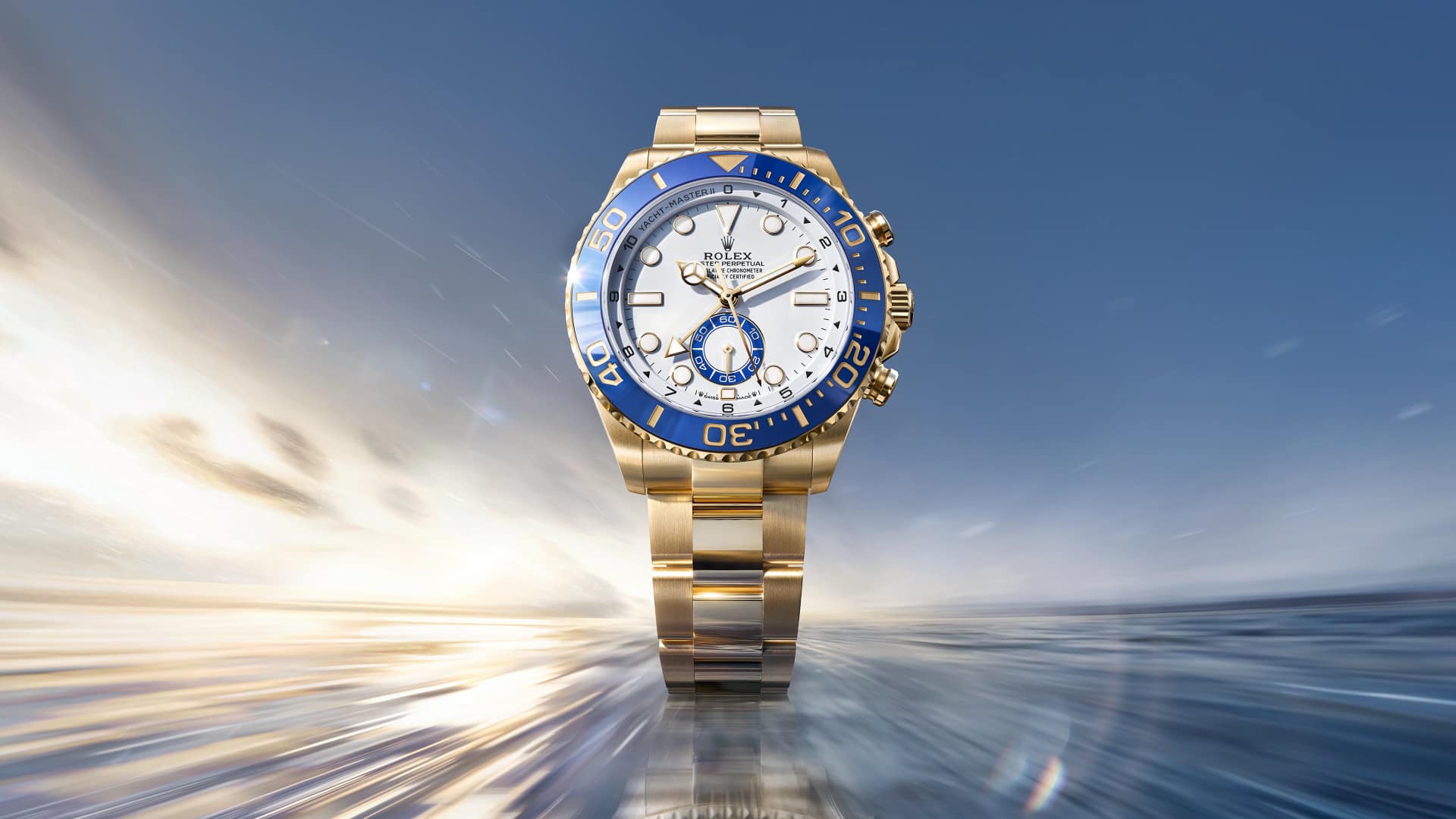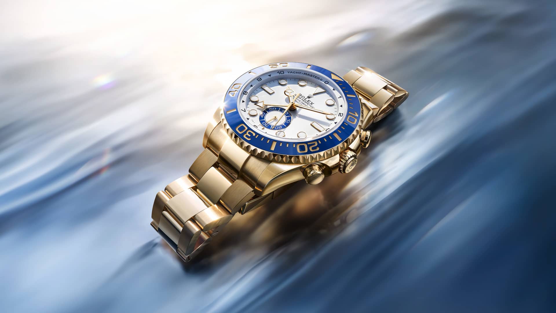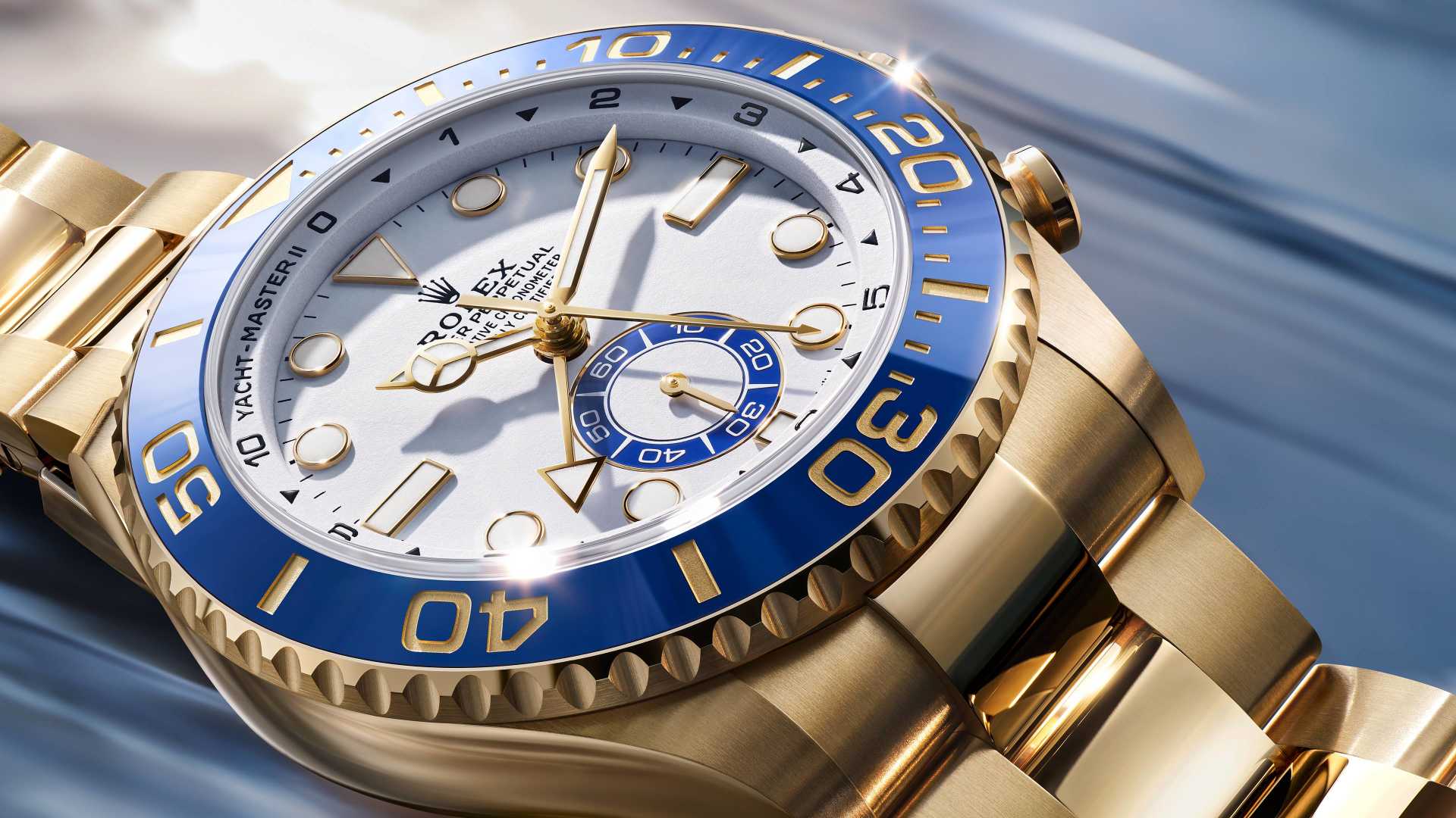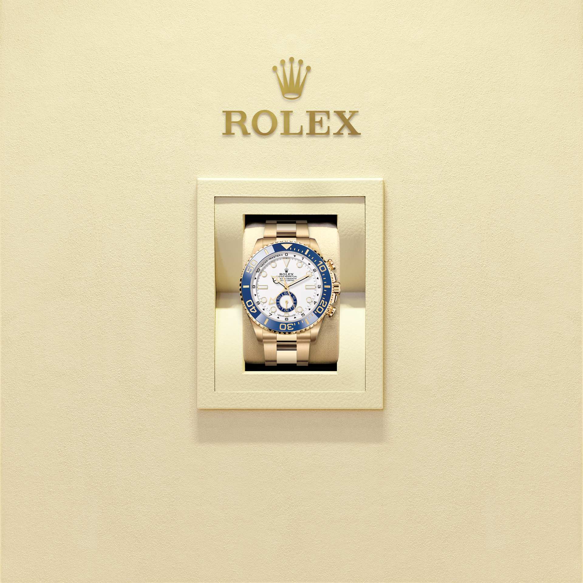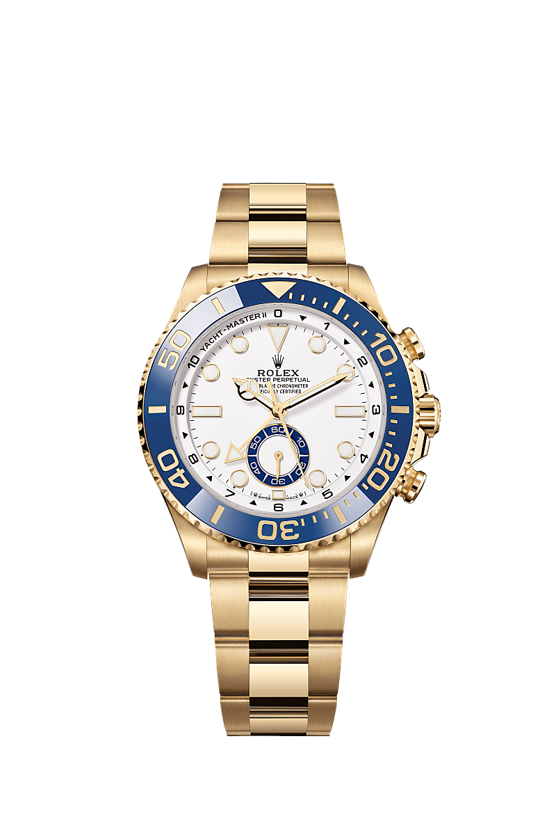 Oyster Perpetual Yacht-Master II en oro amarillo de 18 quilates, con brazalete Oyster y bisel giratorio bidireccional con disco Cerachrom azul.
