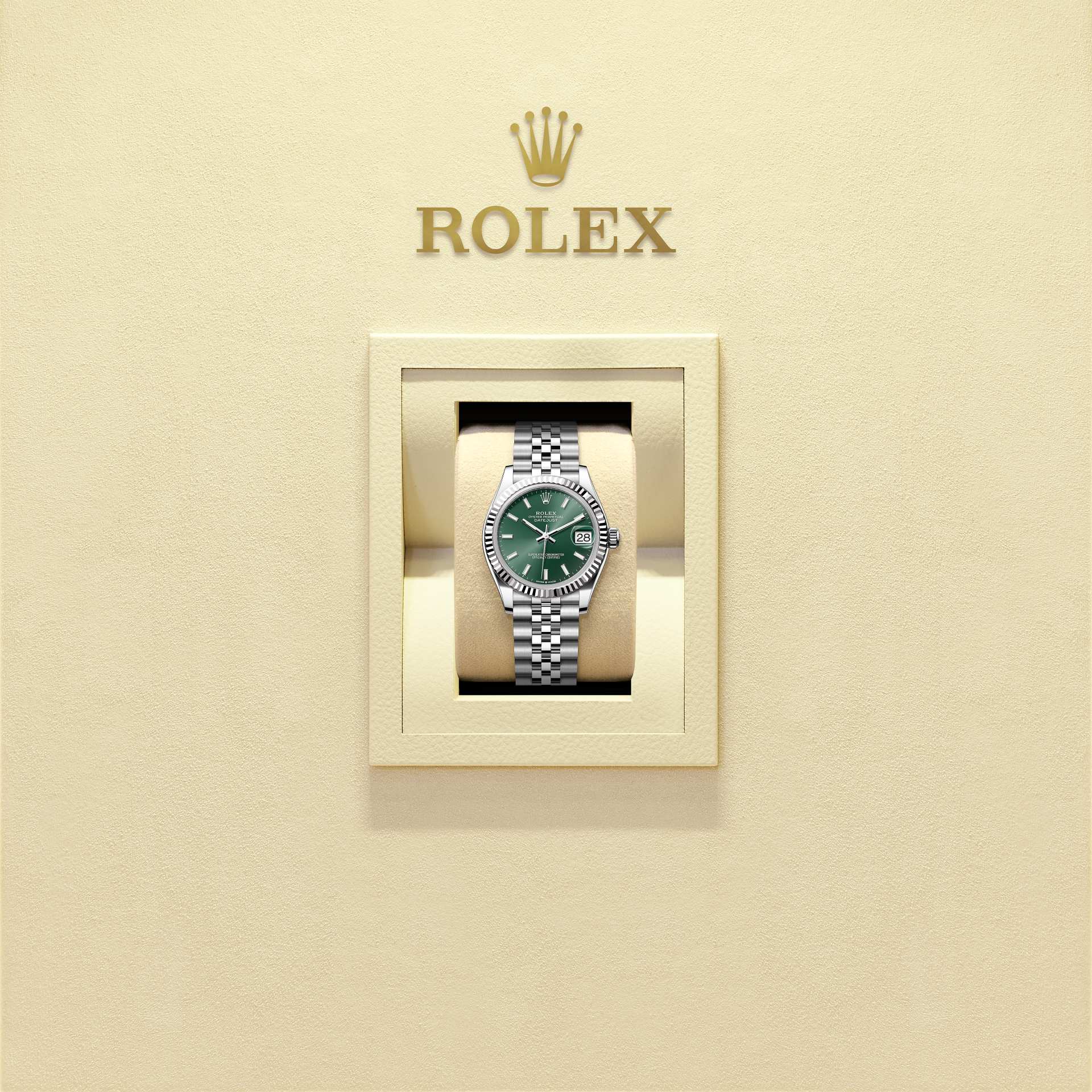 Al igual que sucede con los demás componentes del reloj, los controles estéticos realizados por nuestros expertos garantizan una belleza impecable. El Jubilee, un brazalete fluido y confortable de eslabones de cinco elementos de metal, se creó específicamente para el lanzamiento del modelo Oyster Perpetual Datejust en 1945.