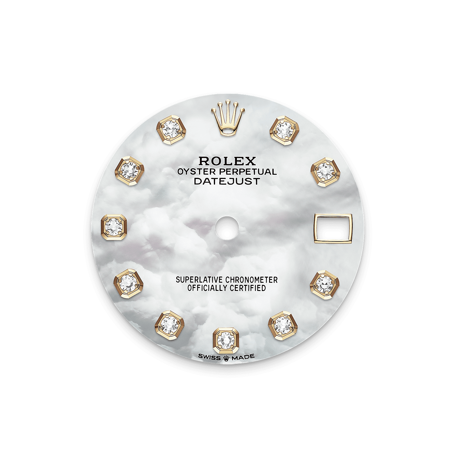 En Rolex, el nácar nunca se colorea de forma artificial. Sencillamente destacamos su belleza natural y preservamos sus colores naturales gracias a un savoir‑faire particular y una gran habilidad. Las esferas de nácar son piezas únicas, por lo que nunca encontrará una igual a la suya en otra muñeca.