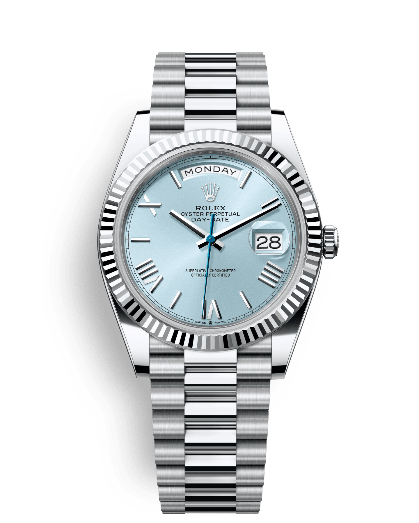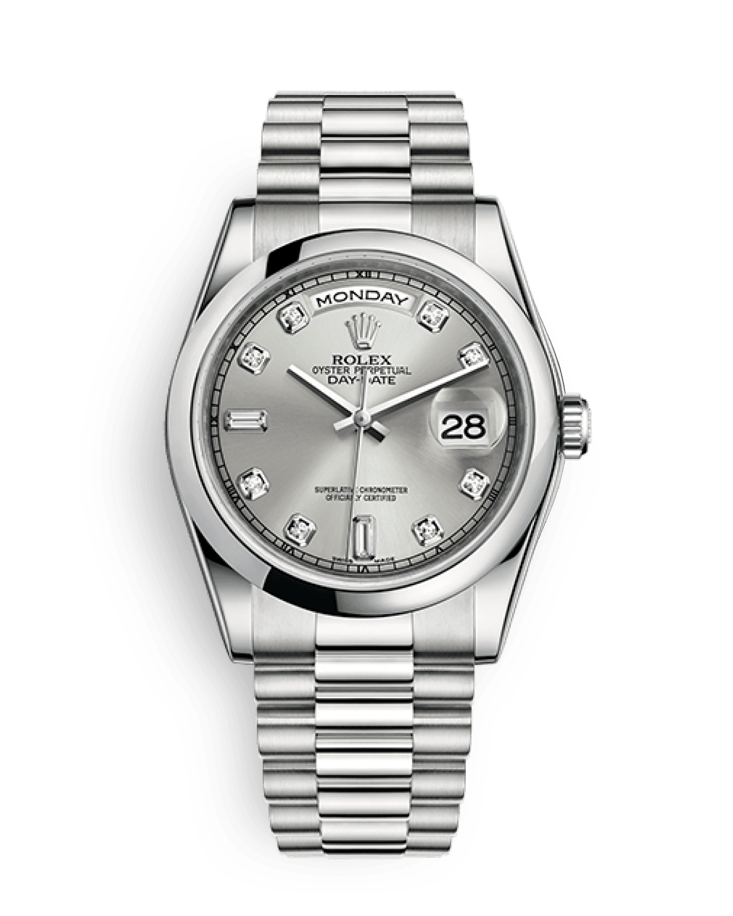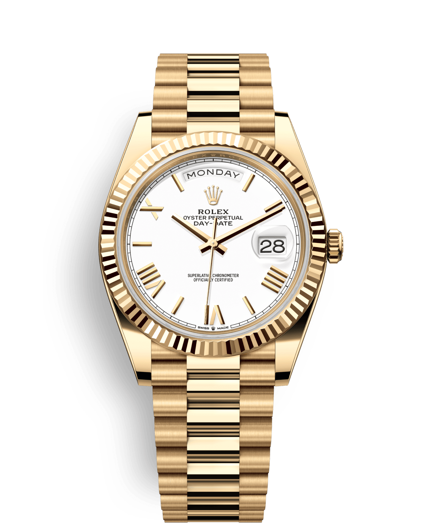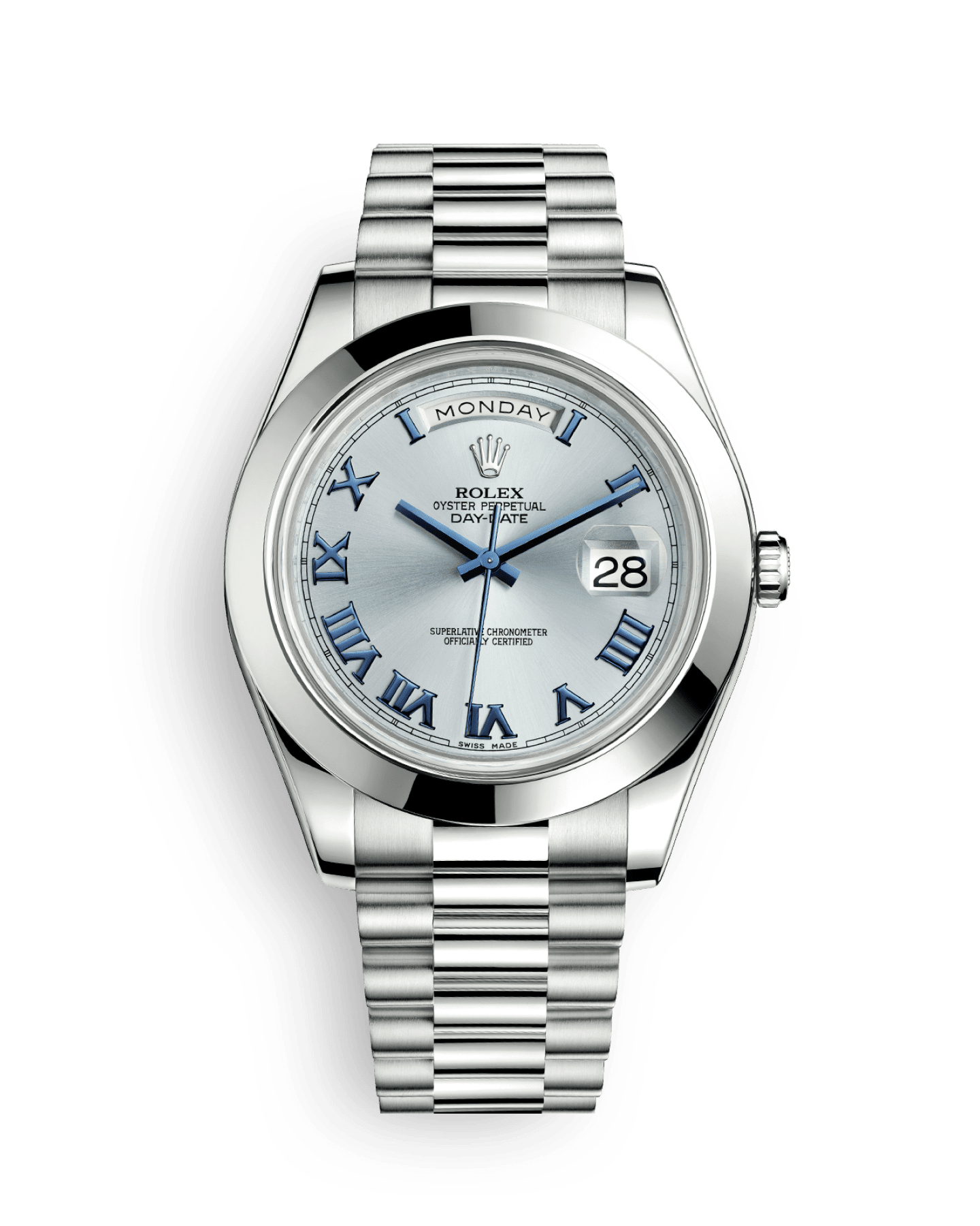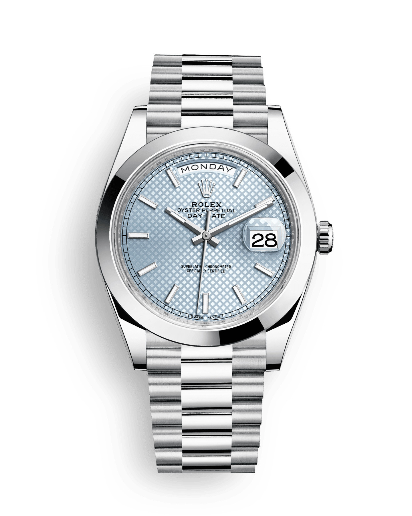 El Day-Date es un reloj de pulsera con calendario que indica tanto la fecha como el día de la semana con todas las letras. Desde su lanzamiento, ha acompañado a personalidades poderosas e influyentes, como se expresa en el eslogan: los que han marcado el destino del mundo lucen relojes Rolex. El Day-Date se convirtió rápidamente en un símbolo universal de prestigio y liderazgo.