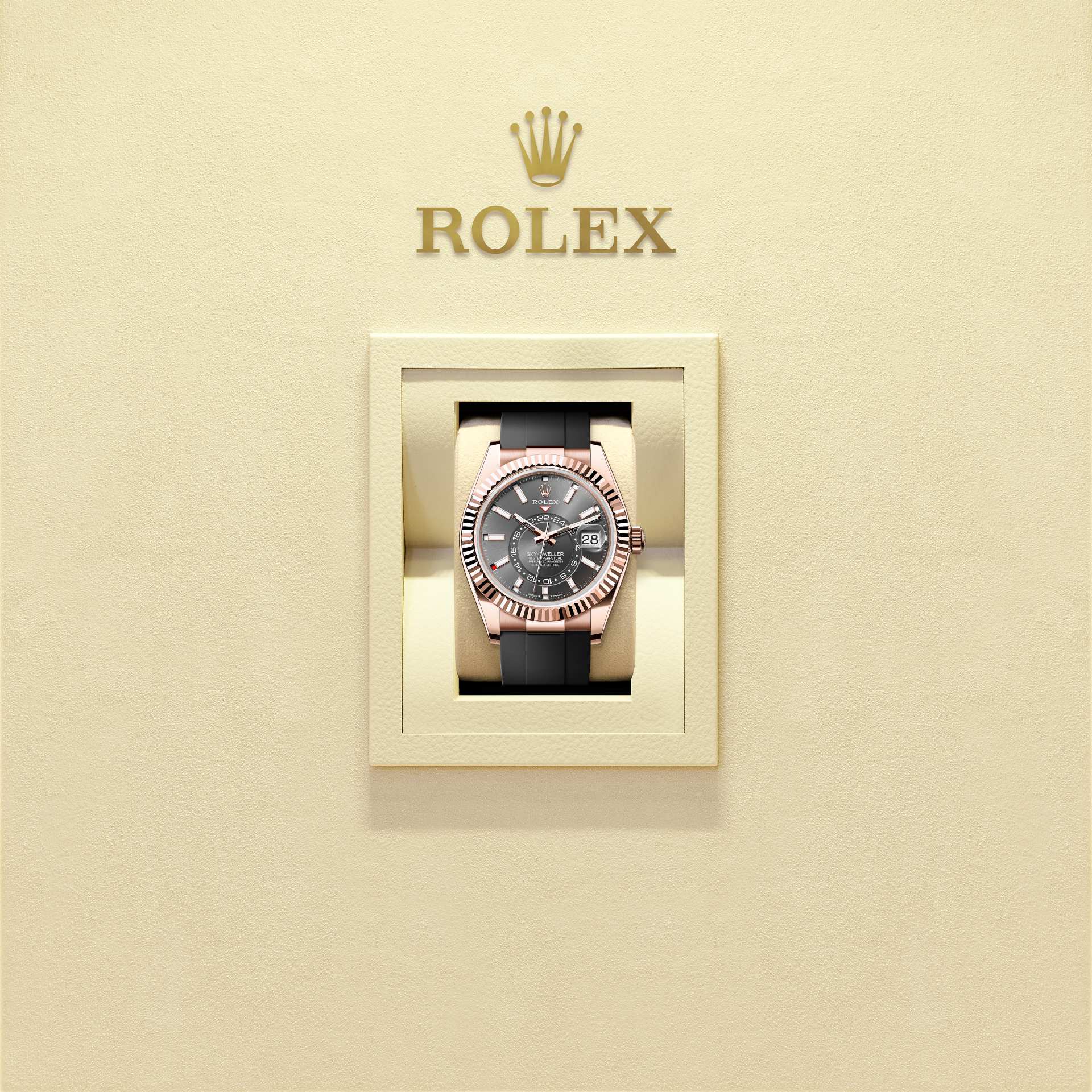 Además, era idéntico al acanalado del fondo de la caja, atornillado a ésta por la misma razón, mediante herramientas específicas de Rolex. Con el tiempo, el estriado se convirtió en un elemento puramente estético, una auténtica característica distintiva de Rolex. En la actualidad, el estriado es una marca de distinción y está disponible únicamente en los modelos en oro. El Sky‑Dweller dispone de un mecanismo de interacción entre el bisel giratorio, la corona y el movimiento: el sistema Ring Command, que permite al usuario del reloj seleccionar las funciones una tras otra y ajustarlas de manera simple, rápida y segura.