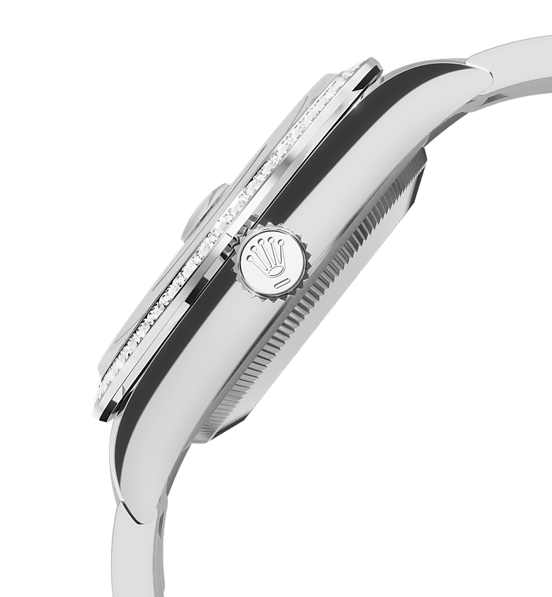 ساعت Oyster Perpetual Datejust 36 از جنس اویستراستیل و طلای سفید مجهز به صفحه سنگی و بند اویستر است.