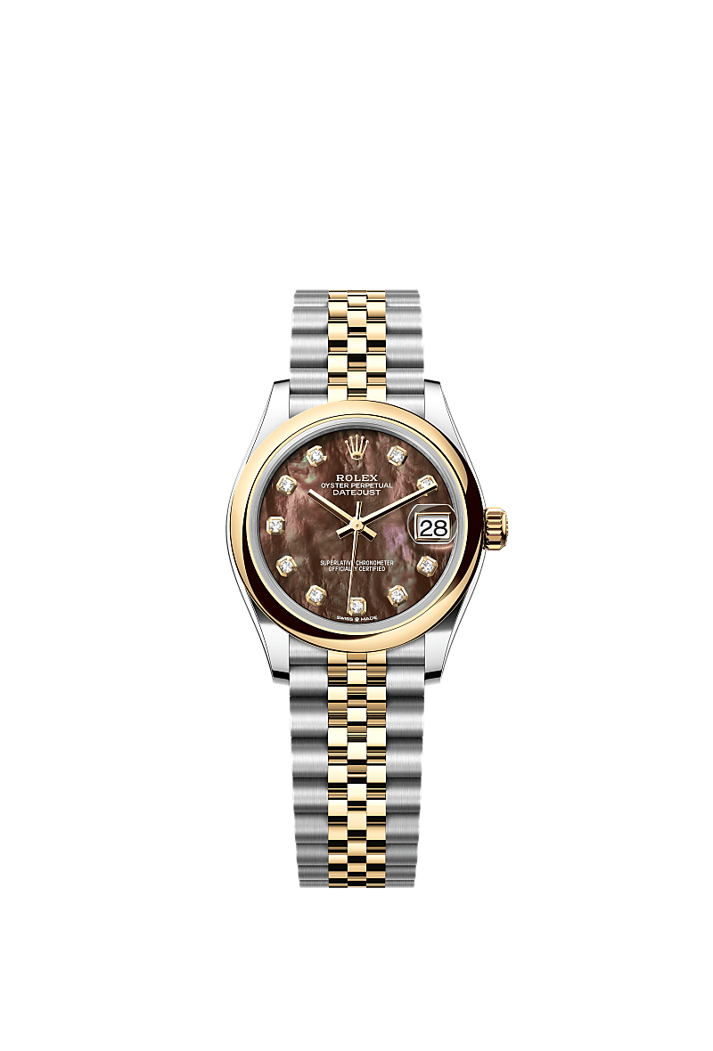 ساعت Oyster Perpetual Datejust 31 از جنس اویستراستیل و طلای زرد مجهز به صفحه صدفی مشکی، الماسنشان و بند جوبیلی (Jubilee) است.