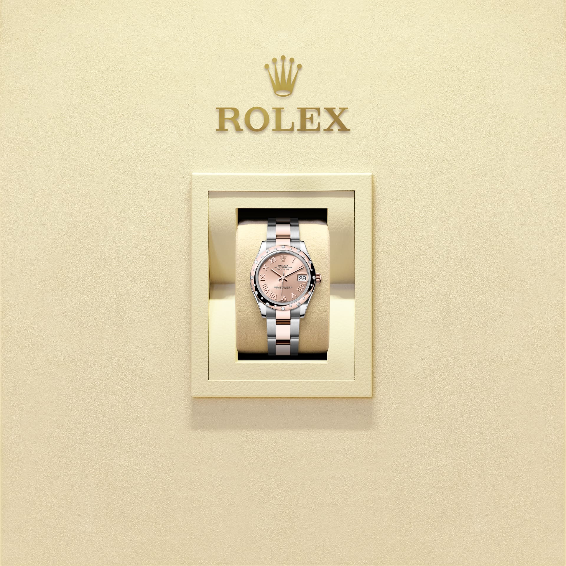 ساعت Oyster Perpetual Datejust 31 از جنس اویستراستیل و طلای اِوررُز مجهز به صفحه به رنگ صورتی و بند اویستر است.