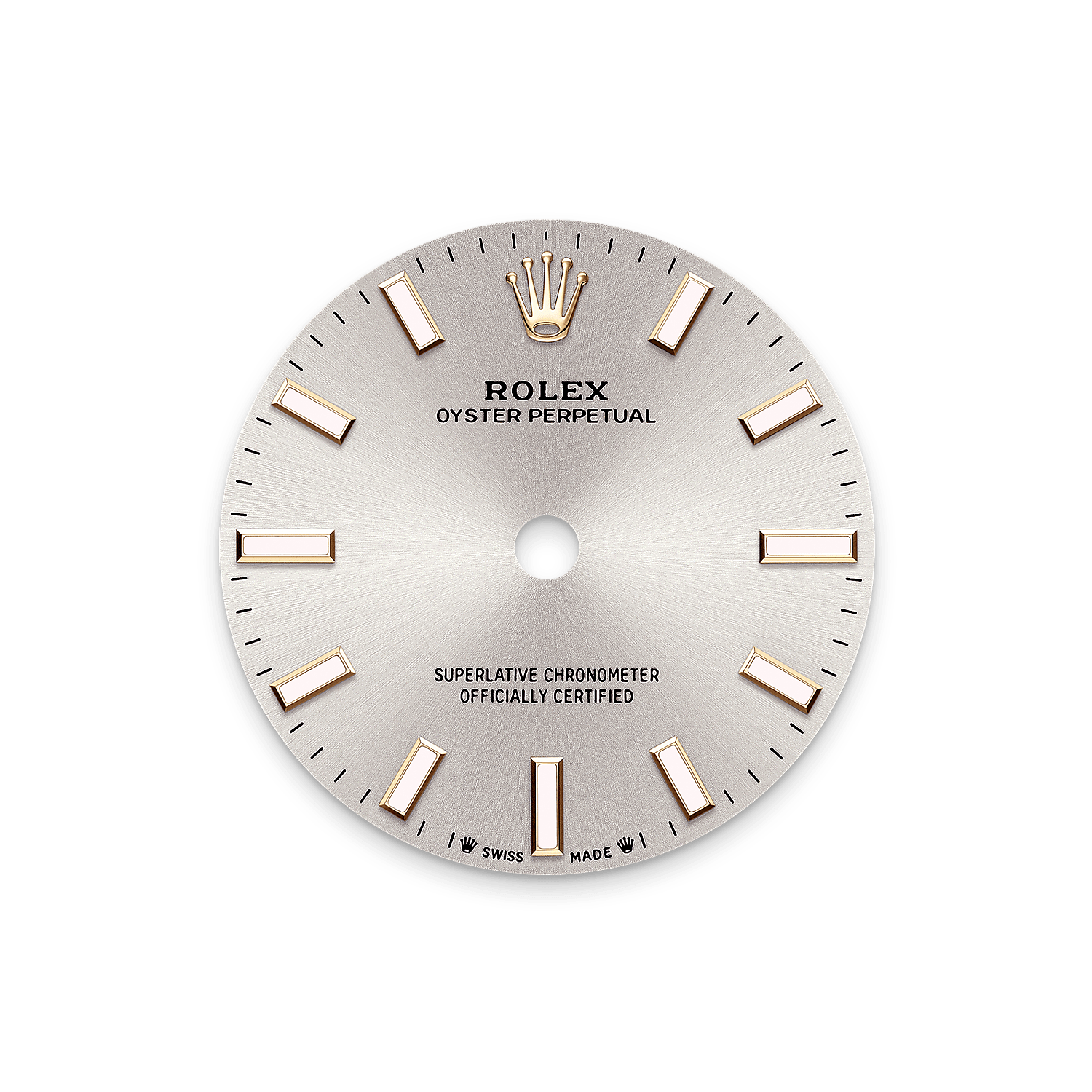 طرح پرتوی آفتاب، بازتاب نور بسیار زیبایی روی بسیاری از صفحههای مجموعه Oyster Perpetual ایجاد میکند. این طرح با استفاده از تکنیک برسکاری بهطور ماهرانهای زده میشود که طی آن، شیارهایی از مرکز صفحه ساعت به سمت بیرون ایجاد میشود.