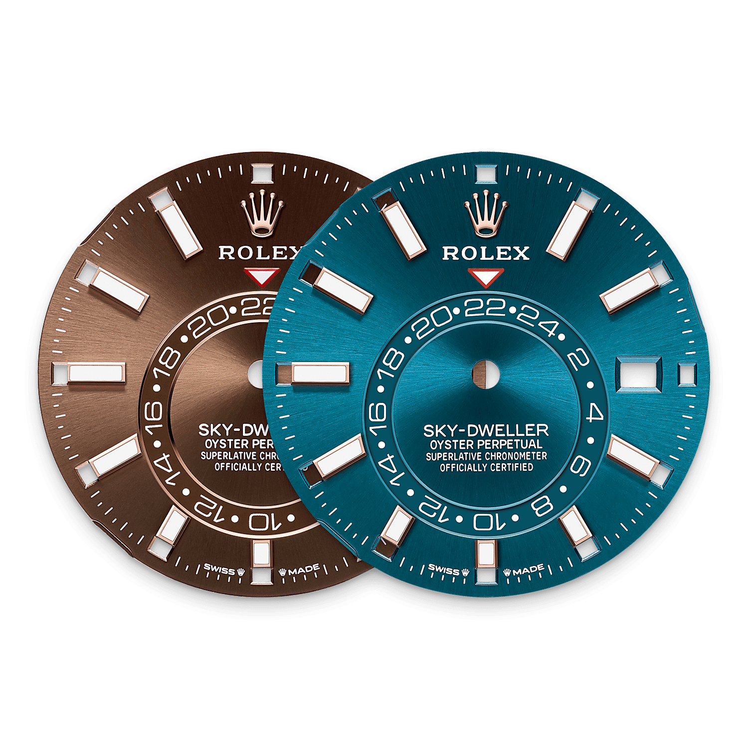 بنابراین این شیارها شبیه شیارهای پشت قاب بود و به منظور حفظ قابلیت ضد آب، با ابزارهای مخصوص رولکس به قاب پیچ شده بود. در طول زمان، شیارها به جنبهای از زیبایی و امضای خاص رولکس تبدیل شدند. امروزه، دورقاب تراشخورده و همواره طلایی نشانه تمایز است. Sky-Dweller شامل سیستم Ring Command، رابط میان دورقاب قابل چرخش، دستۀ کوک و موتور است که به کاربر امکان میدهد به راحتی و به طور سریع و مطمئن، عملکردهای ساعت را یک به یک انتخاب و تنظیم کند.