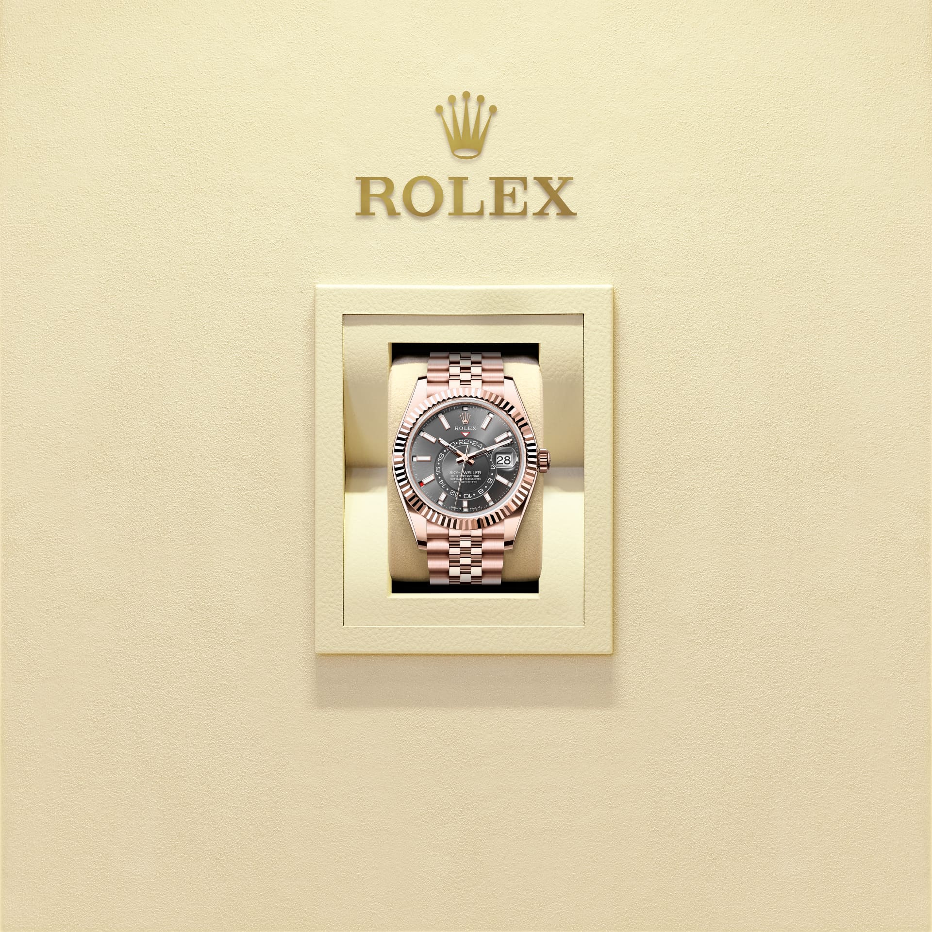 ساعت Oyster Perpetual Sky-Dweller از جنس طلای اِوررُز ۱۸ عیار با صفحه خاکستری و بند جوبیلی (Jubilee).