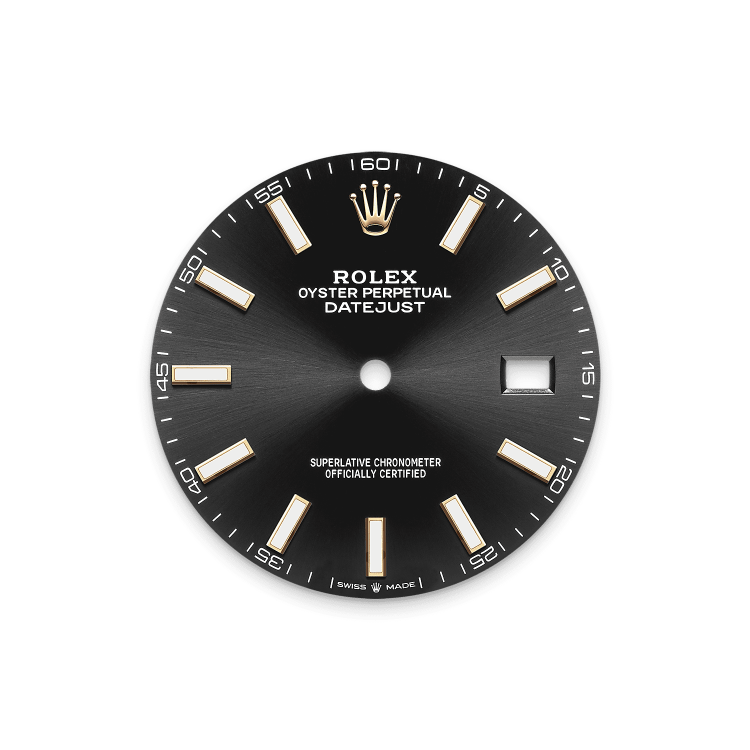 La finition soleil permet d’obtenir des reflets ondoyants sur de nombreux cadrans de la collection Oyster Perpetual. Créée par un brossage circulaire continu parfaitement maîtrisé, elle présente des stries allant du centre du cadran vers l’extérieur.
