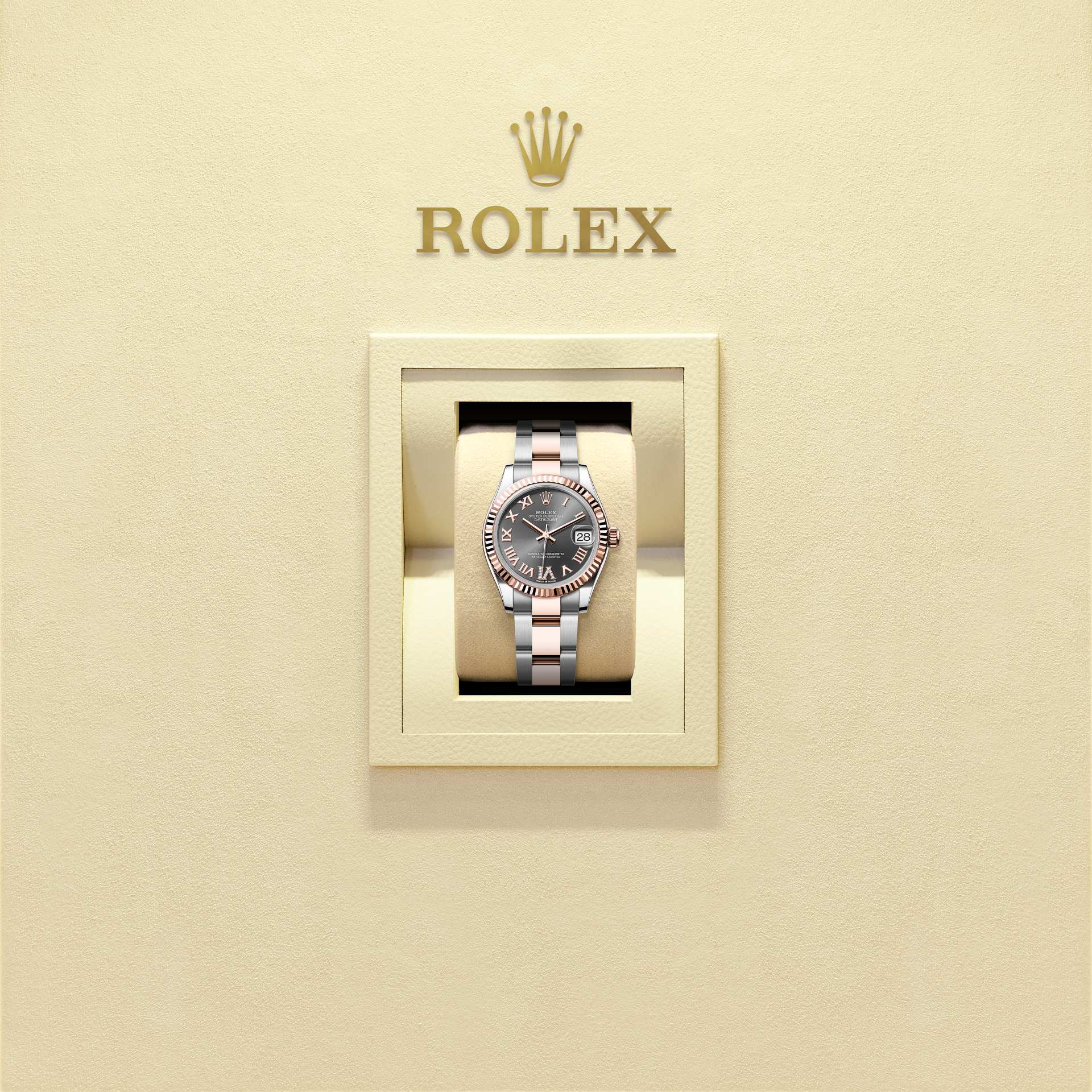 Datejust 31Oyster, 31 mm, acier Oystersteel et or EveroseRéférence 278271