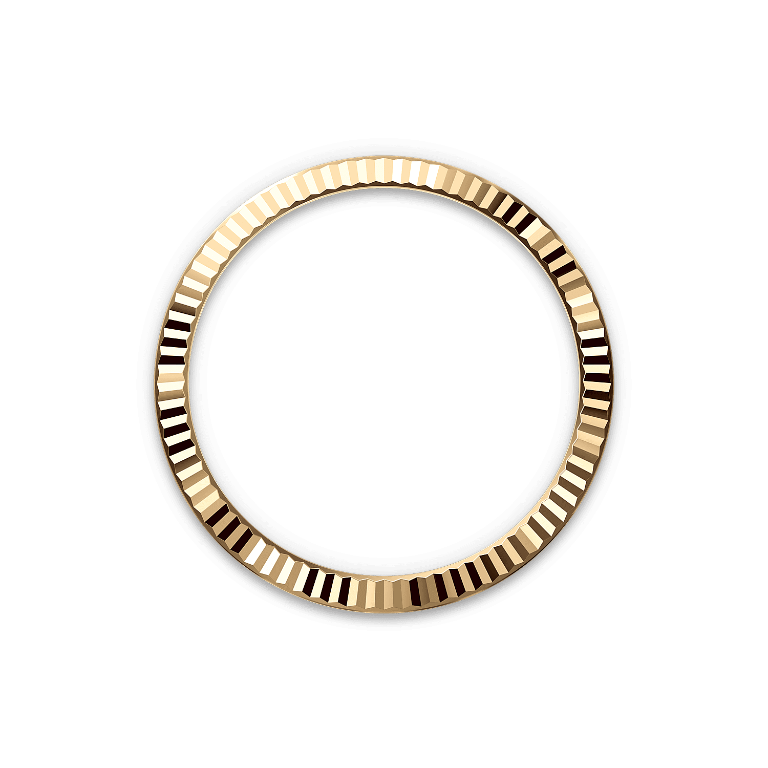 De plus, elles étaient identiques aux cannelures présentes sur le fond de boîtier, lui aussi vissé sur le boîtier pour la même raison, au moyen d’outils Rolex spécifiques. Avec le temps, les cannelures sont devenues un élément purement esthétique, la signature de Rolex. Aujourd'hui la lunette cannelée est un élément signature, en or sur cette Day-Date 40.
