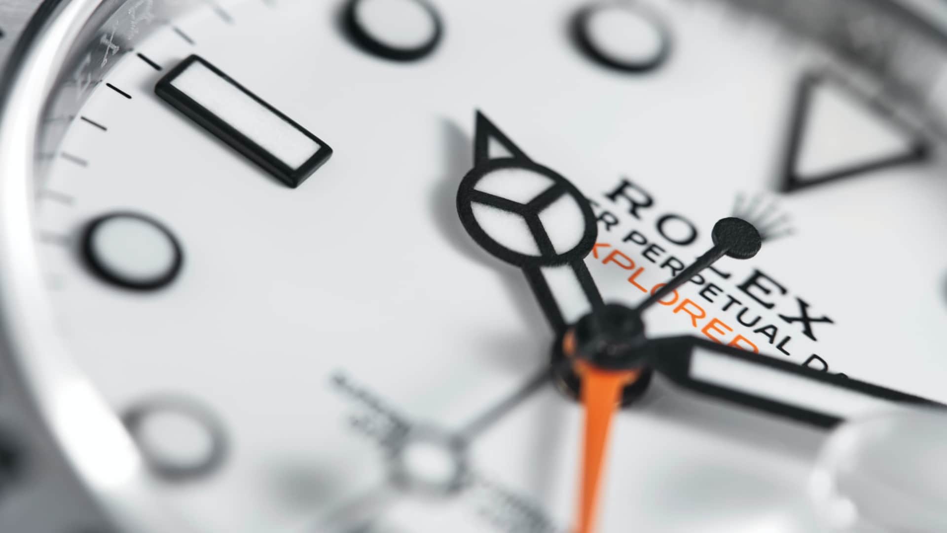 En plus d’afficher la date, l’Explorer II se distingue par une aiguille 24 heures additionnelle orange et par une lunette fixe graduée 24 heures qui permettent de différencier les heures du jour de celles de la nuit.