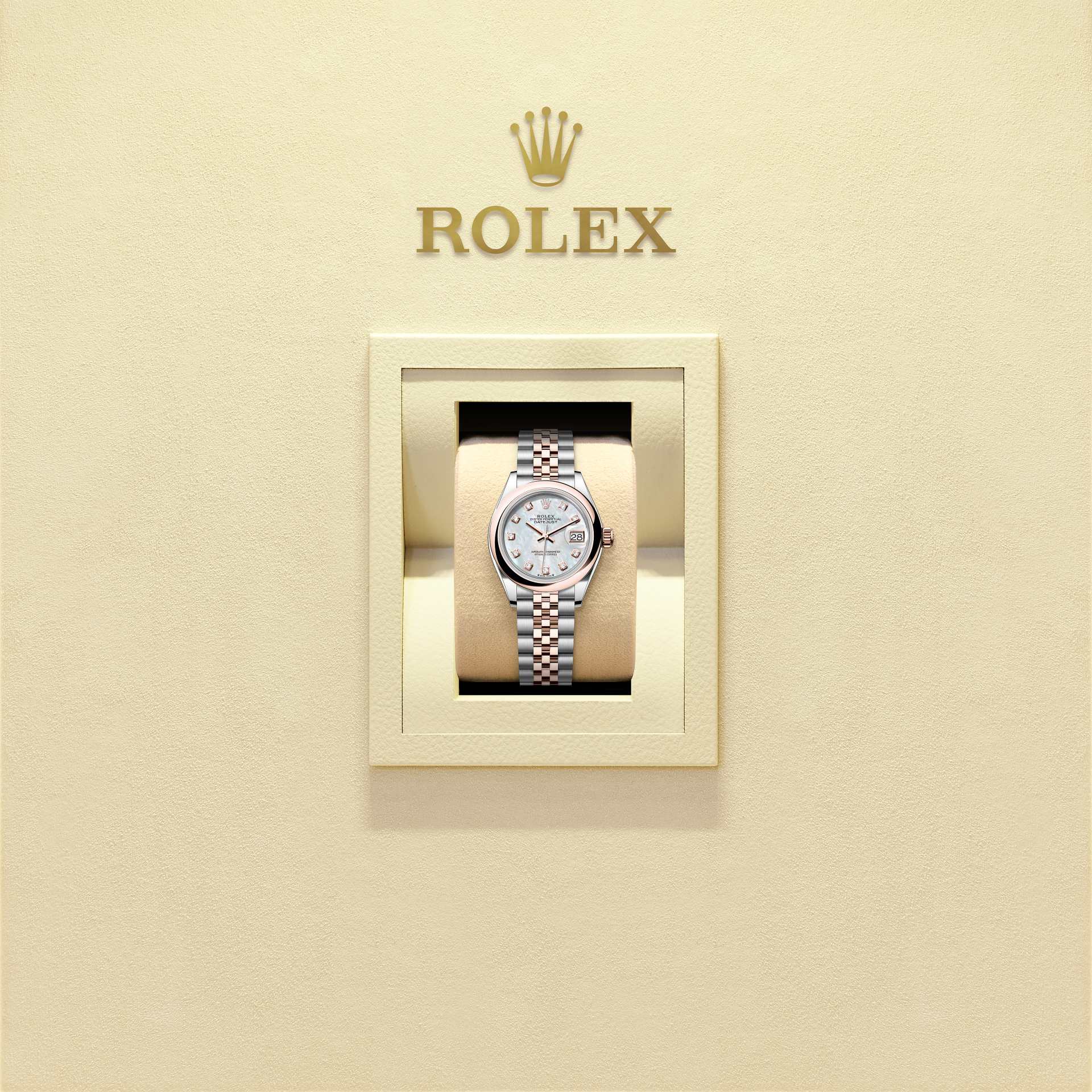 Lady-DatejustOyster 28 mm, acier Oystersteel et or EveroseRéférence 279161