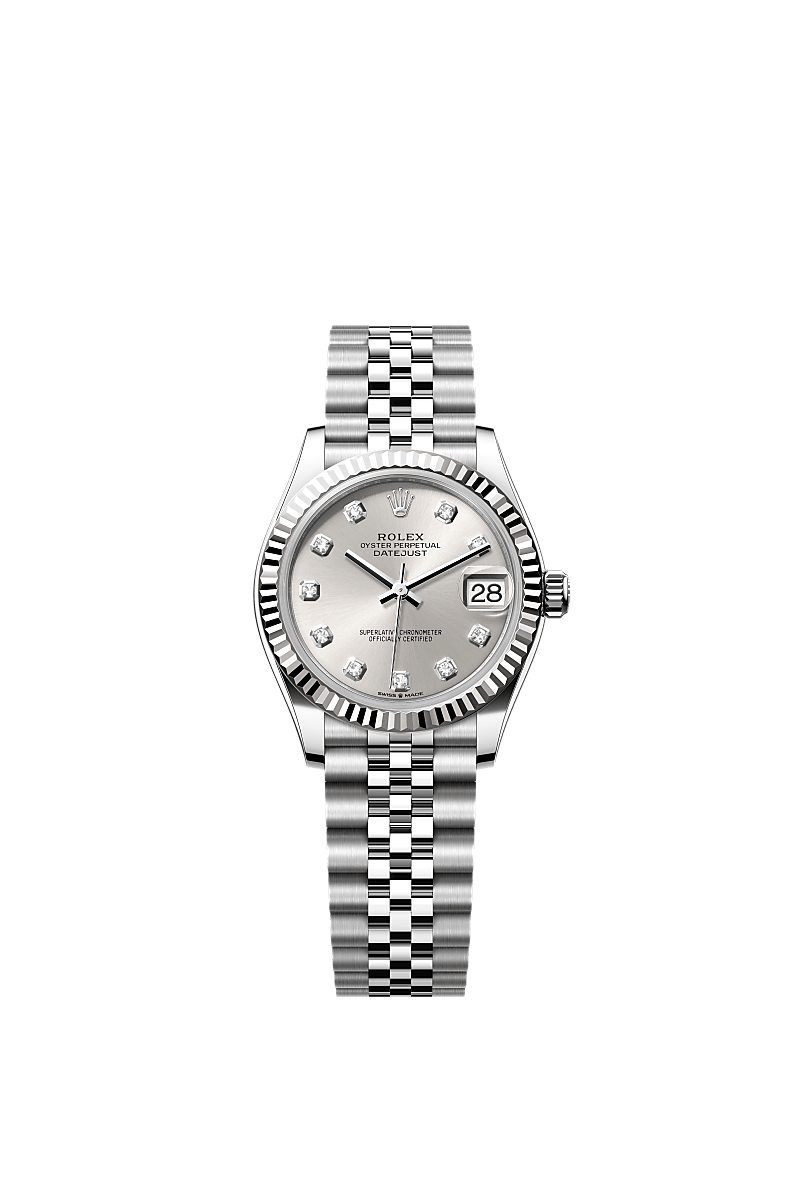 אויסטר פרפטואל דייטג'אסט 31 זה מפלדת אויסטר וזהב לבן מצויד בלוח מחוגים מכסף, בשיבוץ יהלומים וצמיד ג'ובילי (Jubilee).