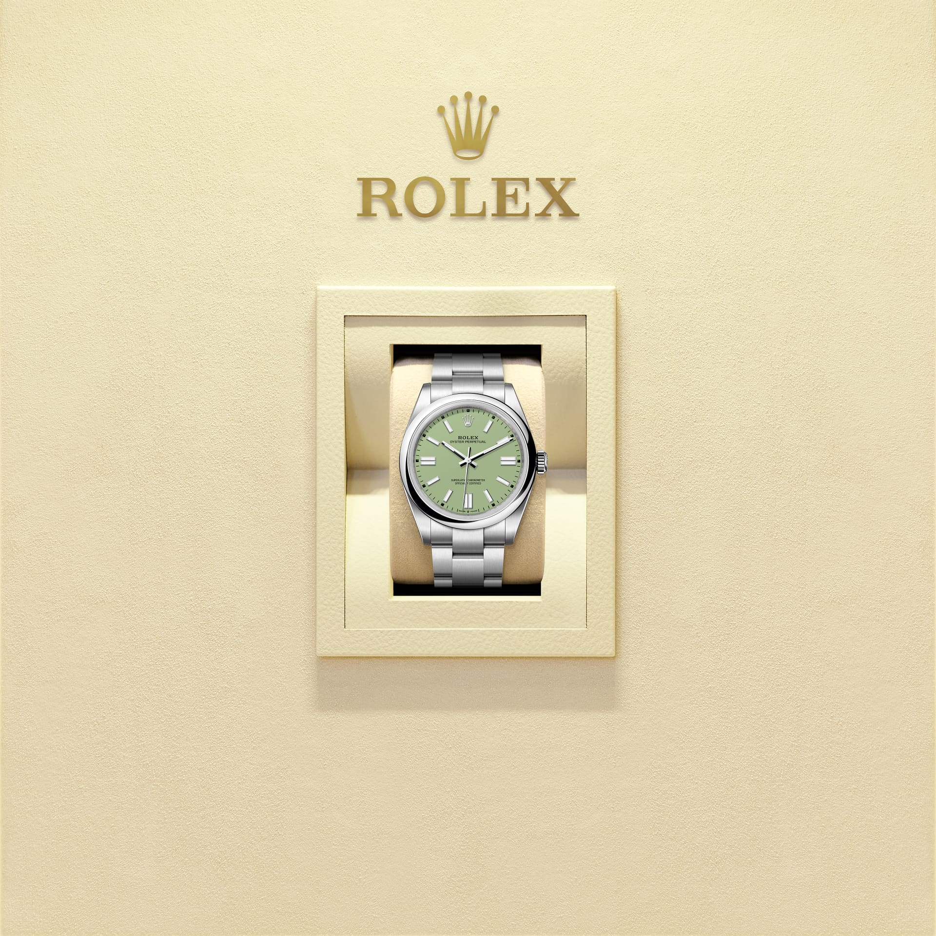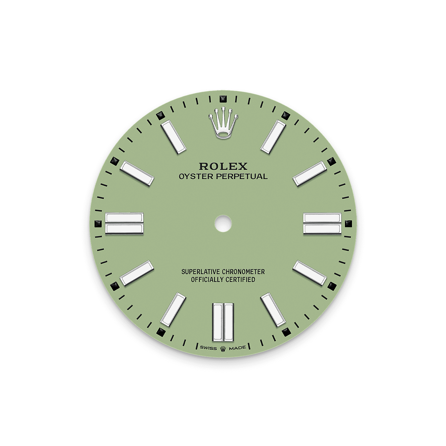 האויסטר פרפטואל 41 עם לוח מחוגים בצבע פיסטוק וצמיד אויסטר.