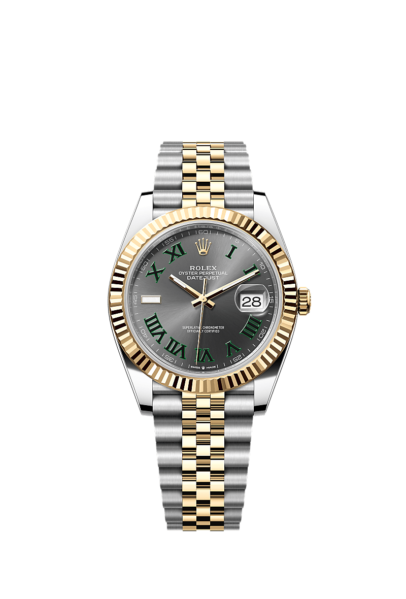 डेटजस्ट 41 में ऑइस्टर पर्पेचुअल ऑयस्टरस्टील और येलो गोल्ड की विशेषता एक स्लेट डायल और एक जुबिली (Jubilee) ब्रेसलेट।