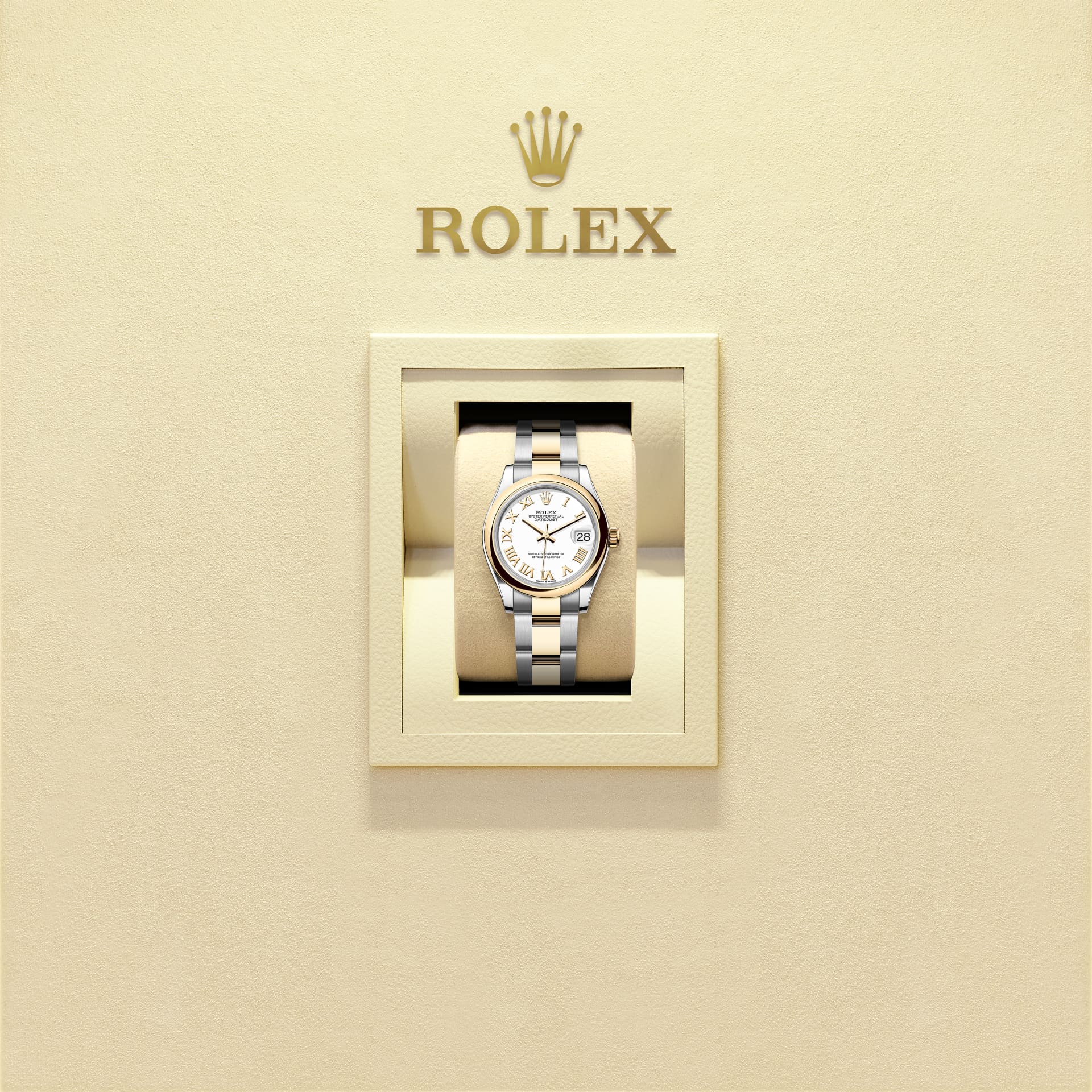 डेटजस्ट 31 में ऑइस्टर पर्पेचुअल ऑयस्टरस्टील और येलो गोल्ड की विशेषता एक व्हाइट डायल और एक ऑयस्टर ब्रेसलेट।