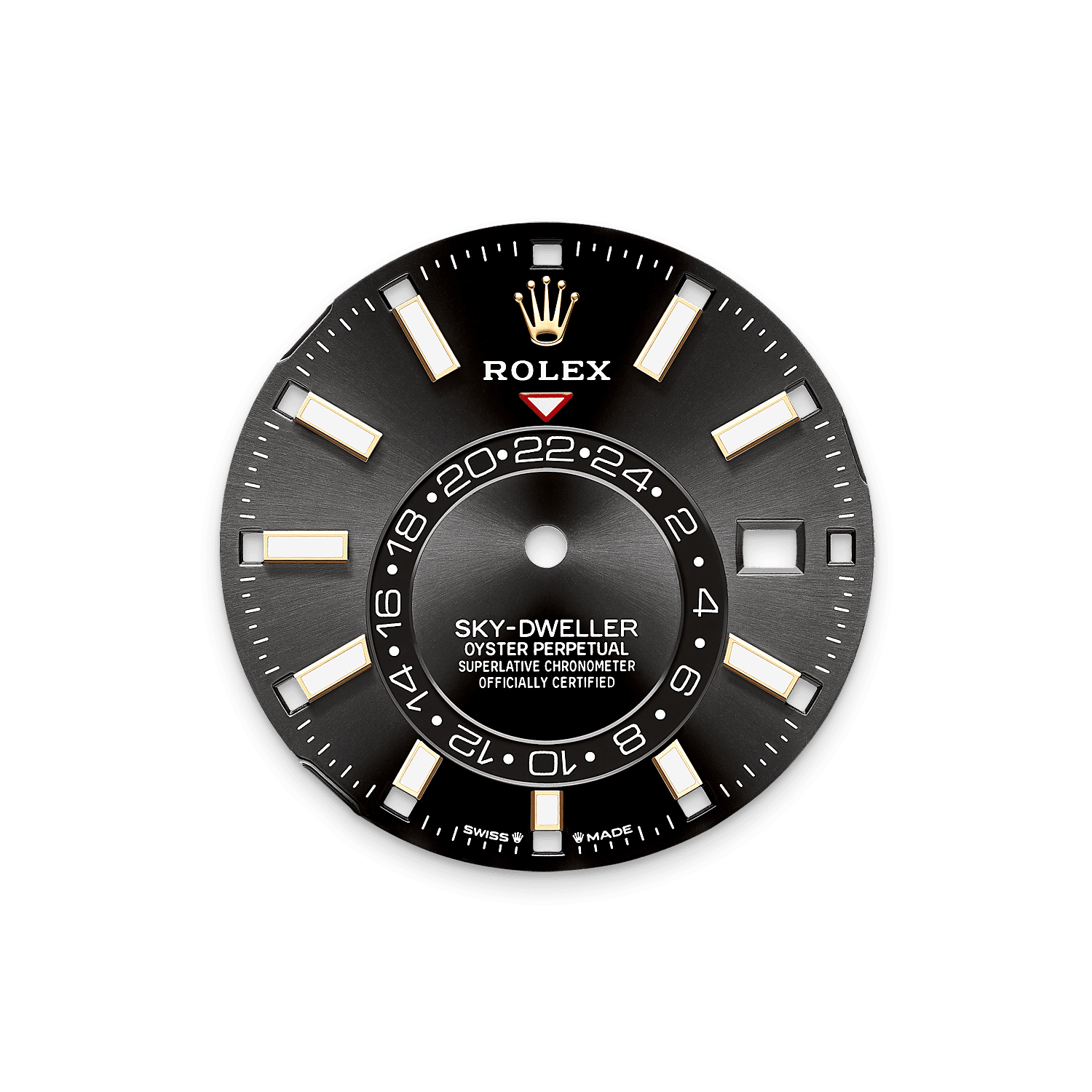 डायल पर स्थिर उल्टा लाल त्रिकोण केंद्र से हटकर बनी 24-घंटे की डिस्क पर चुने गए संदर्भ समय - घर या यात्री के सामान्य कार्यस्थल का समय - की ओर संकेत करता है। एक नज़र में, यह 24 घंटे का डिसप्ले एक नज़र में दूसरे समय क्षेत्र में दिन के समय को रात के समय से अलग दिखा देता है।