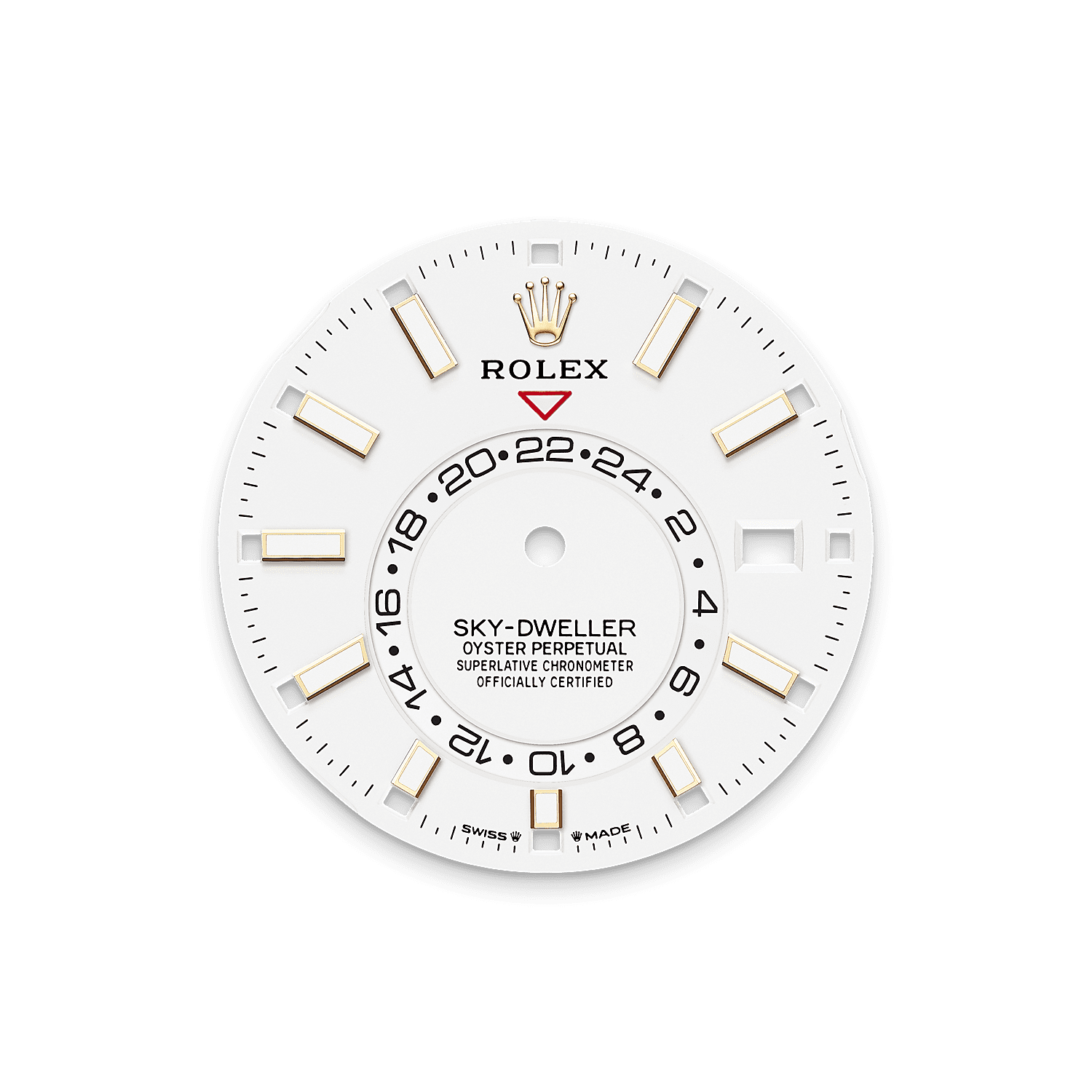 डायल पर स्थिर उल्टा लाल त्रिकोण केंद्र से हटकर बनी 24-घंटे की डिस्क पर चुने गए संदर्भ समय - घर या यात्री के सामान्य कार्यस्थल का समय - की ओर संकेत करता है। एक नज़र में, यह 24 घंटे का डिसप्ले एक नज़र में दूसरे समय क्षेत्र में दिन के समय को रात के समय से अलग दिखा देता है।
