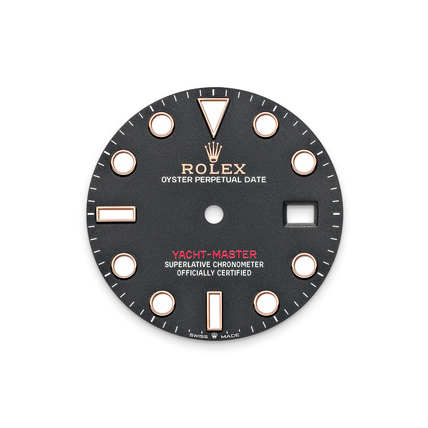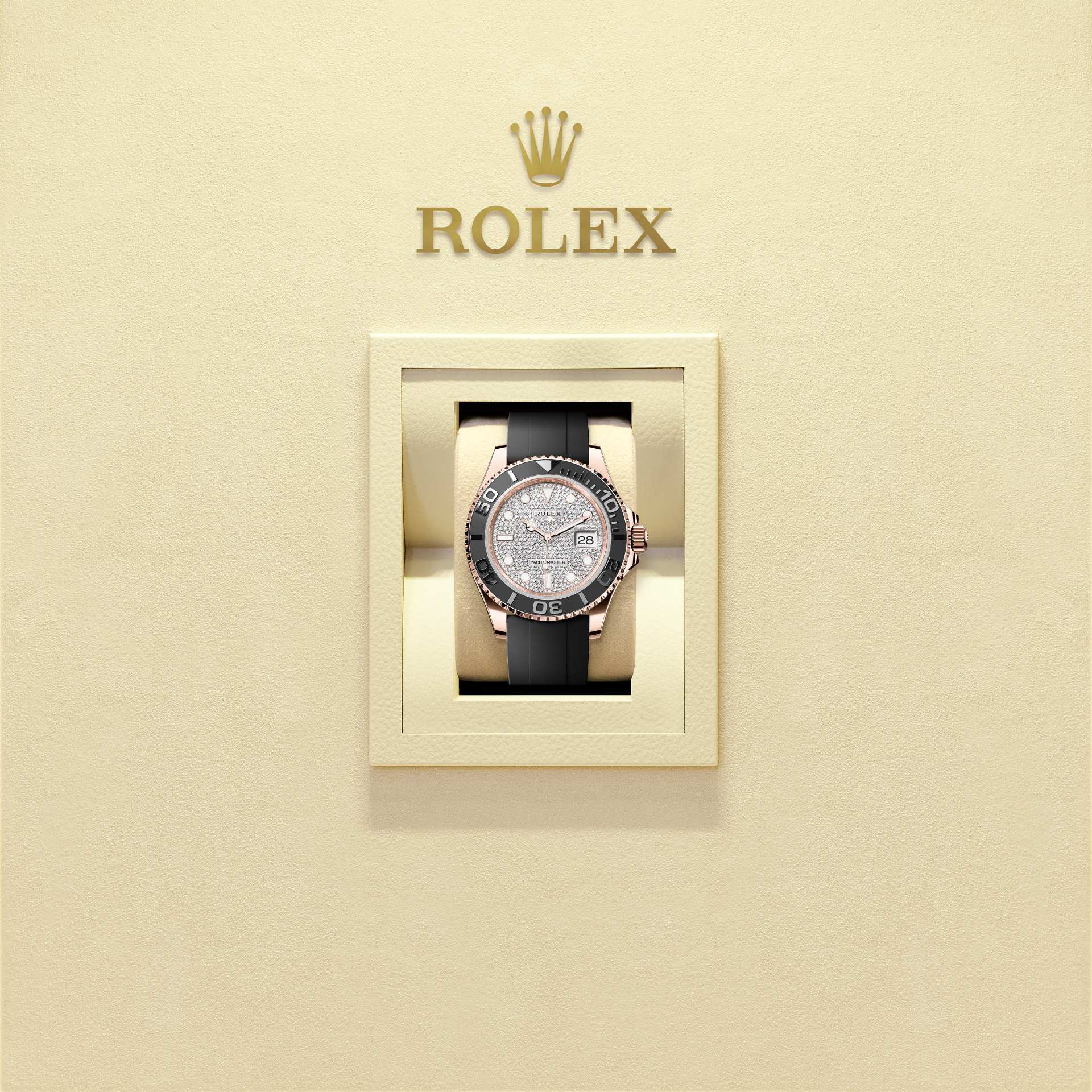 यॉट-मास्टर को आसानी से उसके दोनों दिशाओं में घूमने योग्य 60-मिनट के ग्रेजुएटेड बेज़ेल से पहचाना जा सकता है जो या तो पूरी तरह बहुमूल्य धातु - एवरोज़ सोना या प्लैटिनम) से बना होता है या उच्च-प्रौद्योगिकी सिरेमिक में सेराक्रॉम इनसर्ट से युक्त होता है। उन्नत पॉलिश किए गए अंकों और ग्रेजुएशन्स मैट, रेत-विस्फोटित पृष्ठभूमि में स्पष्ट रूप से नज़र आते हैं।