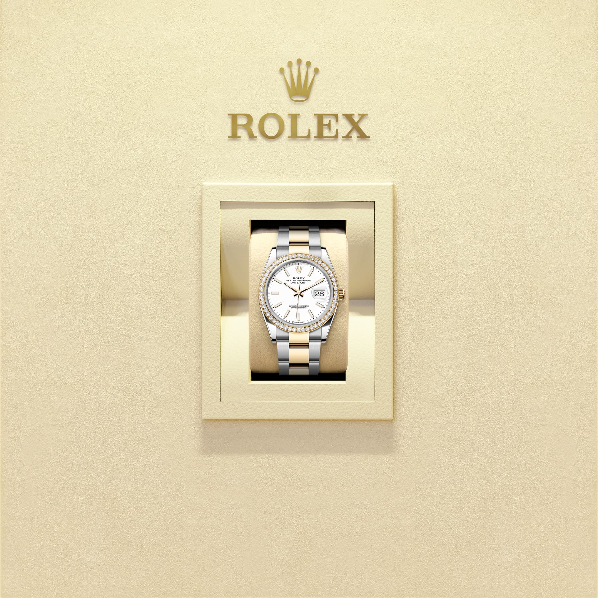 Datejust 36, Oyster, 36 mm, Oystersteel, emas kuning dan berlian, Dial : Putih, Rolex
