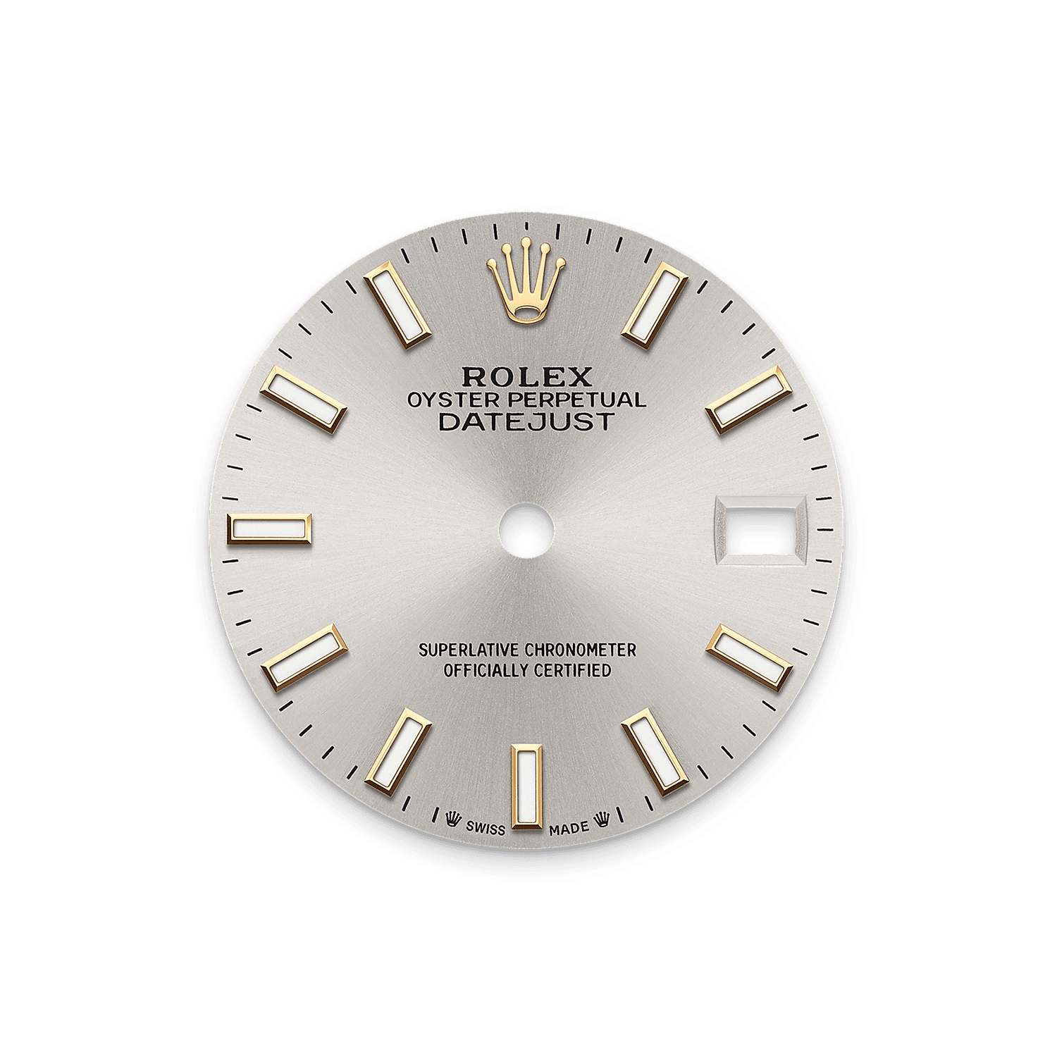 Dan, bersama semua komponen jam ini, kendali estetika oleh mata manusia menjamin keindahannya yang sempurna. Jubilee, rantai jam logam kaitan lima keping yang luwes dan nyaman, dirancang dan dibuat secara khusus untuk peluncuran Oyster Perpetual Datejust pada tahun 1945.