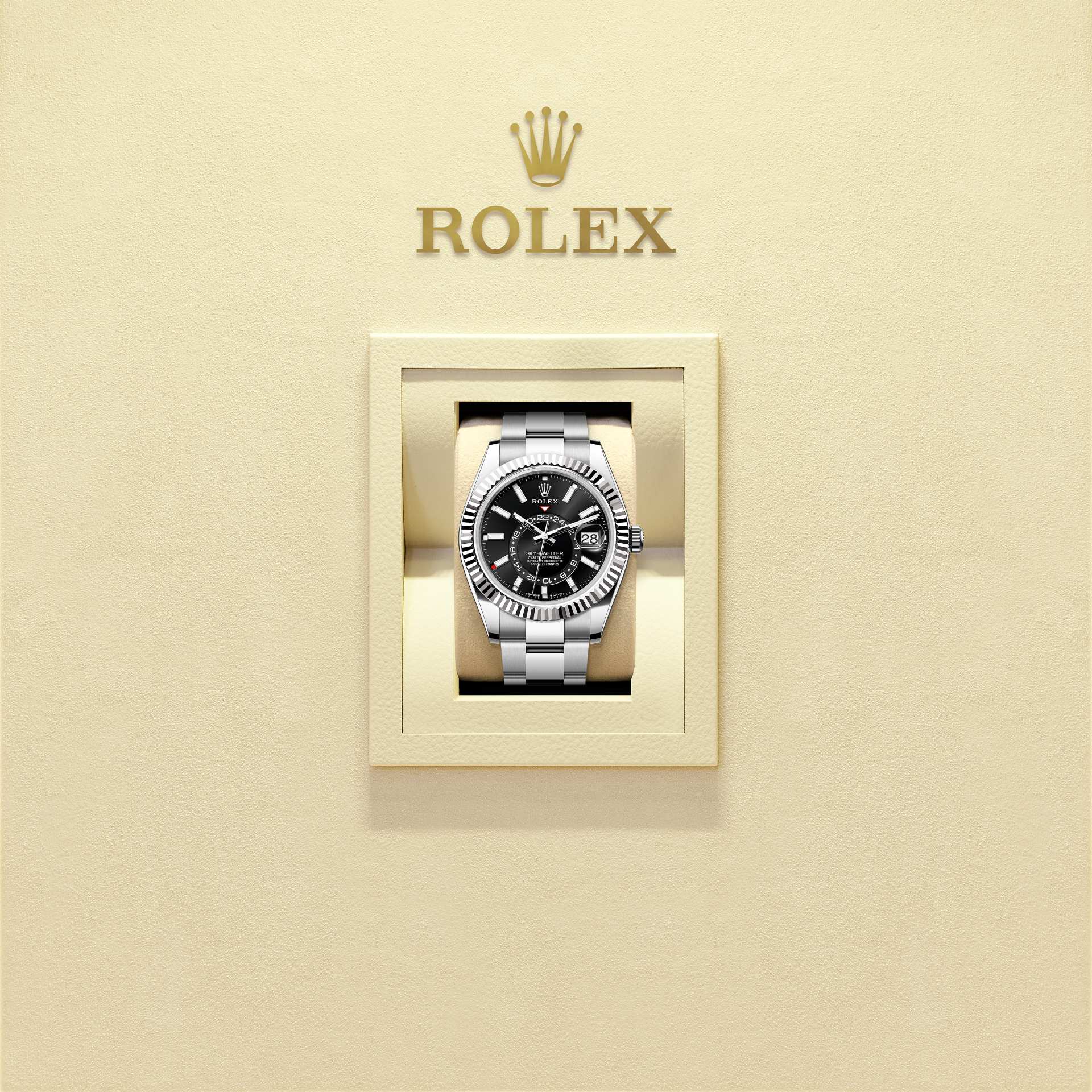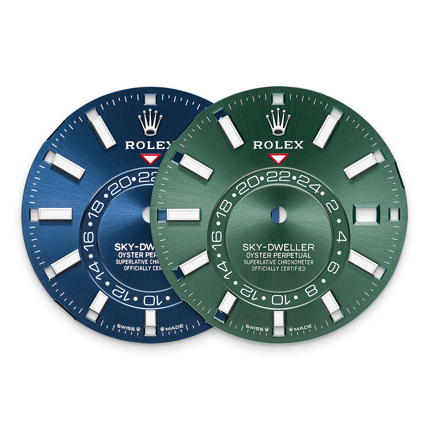 Sky-Dweller dipasangkan dengan rantai jam Oyster dengan kaitan padat dalam Oystersteel, dalam versi Rolesor putih, atau, untuk versi Rolesor kuning, sebuah rantai jam Oyster memadukan Oystersteel dan emas kuning.