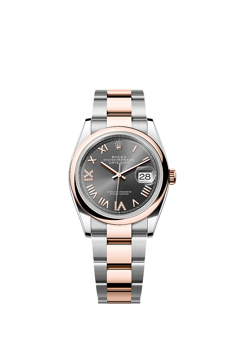 Oyster Perpetual Datejust 36 in acciaio Oystersteel e oro Everose con quadrante ardesia con diamanti e bracciale Oyster.