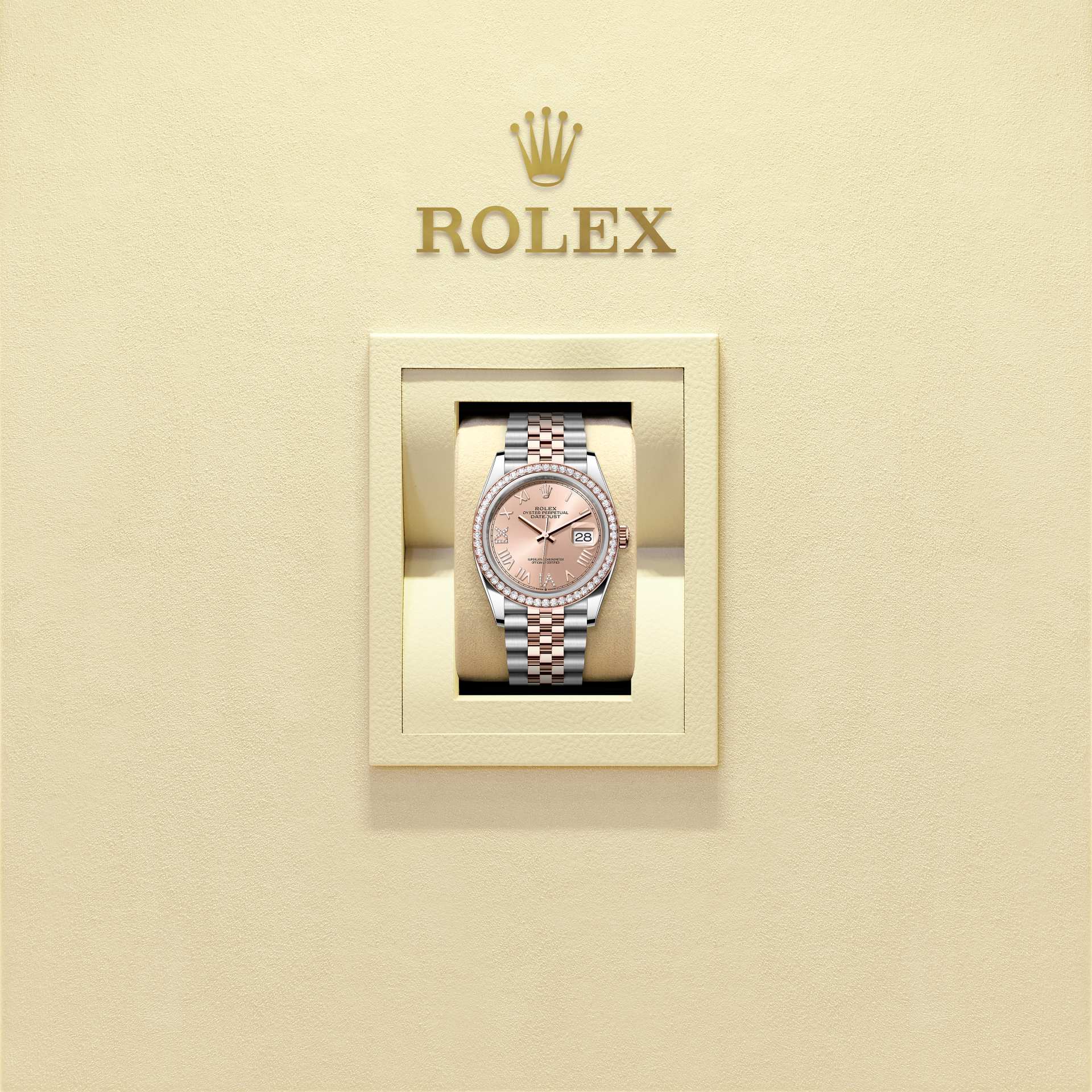 Datejust 36Oyster, 36 mm, acciaio Oystersteel, oro Everose e diamantiReferenza 126281RBR