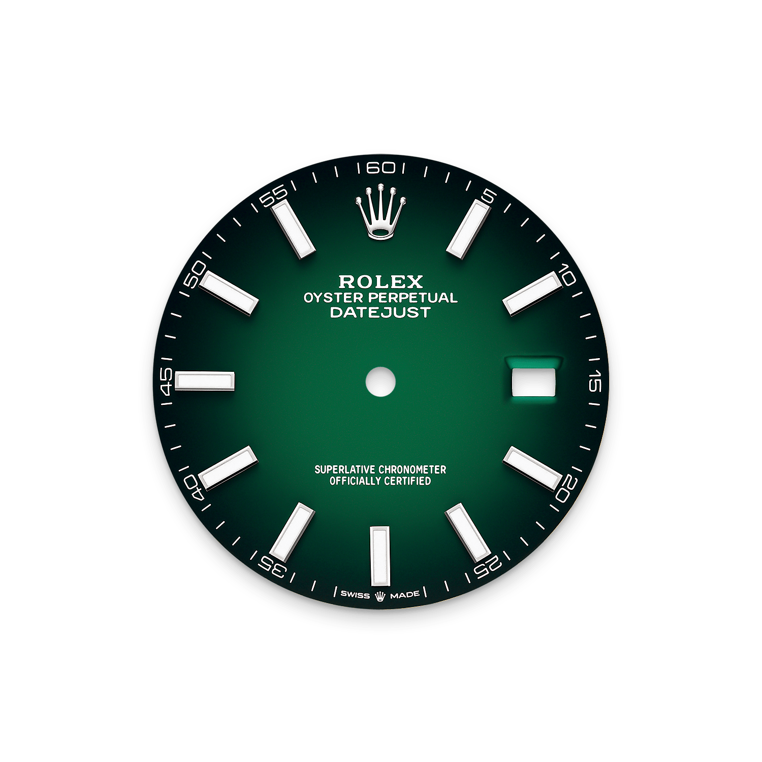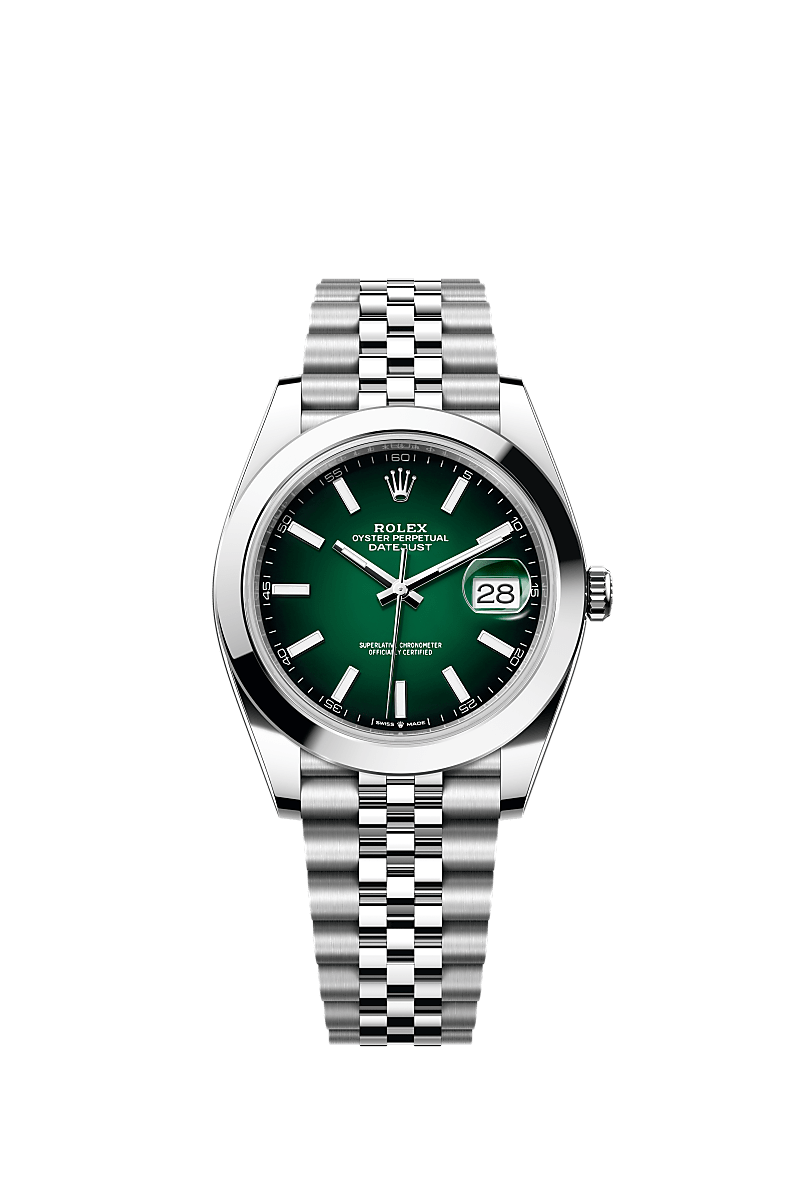 Oyster Perpetual Datejust 41 in acciaio Oystersteel con quadrante verde ombré e bracciale Jubilee.
