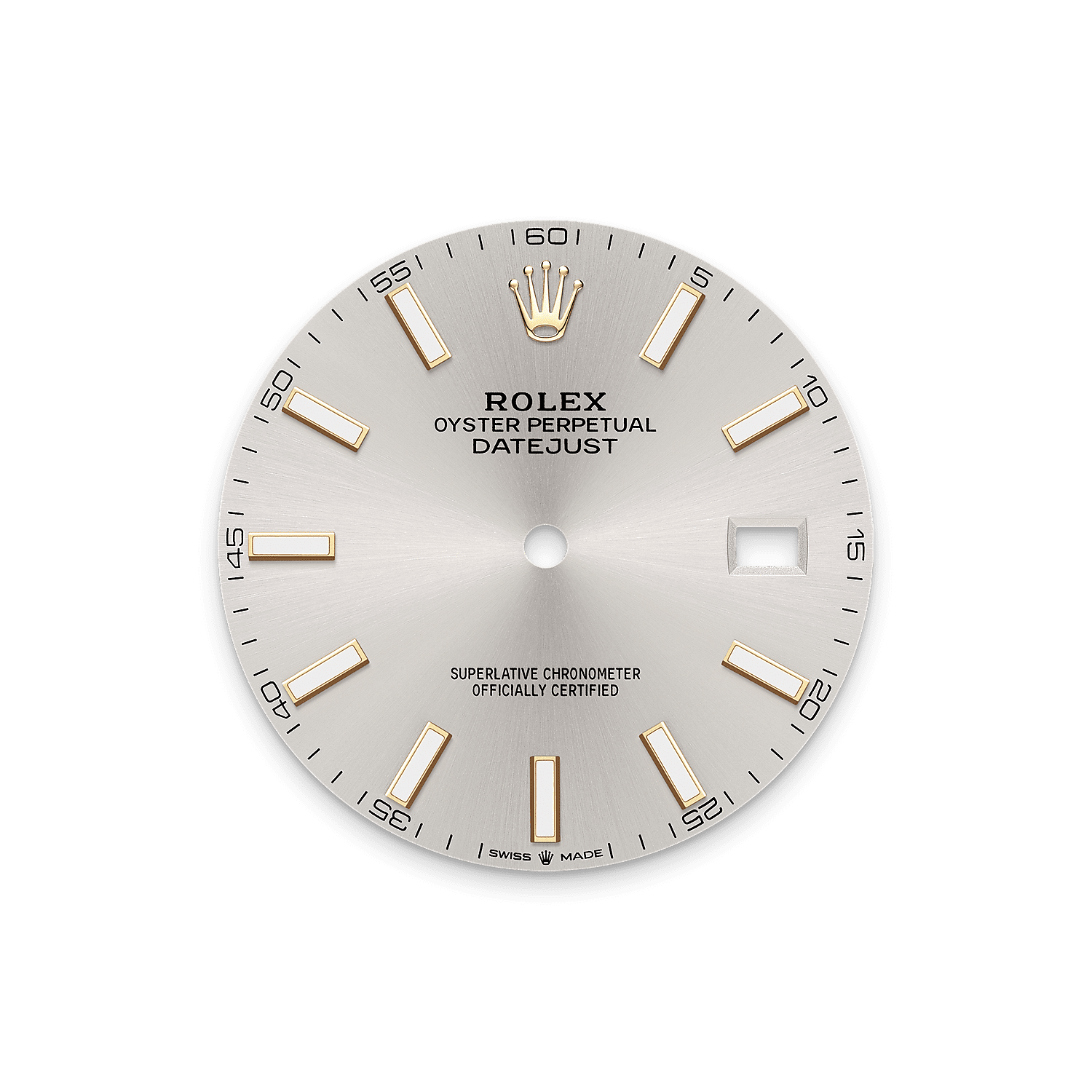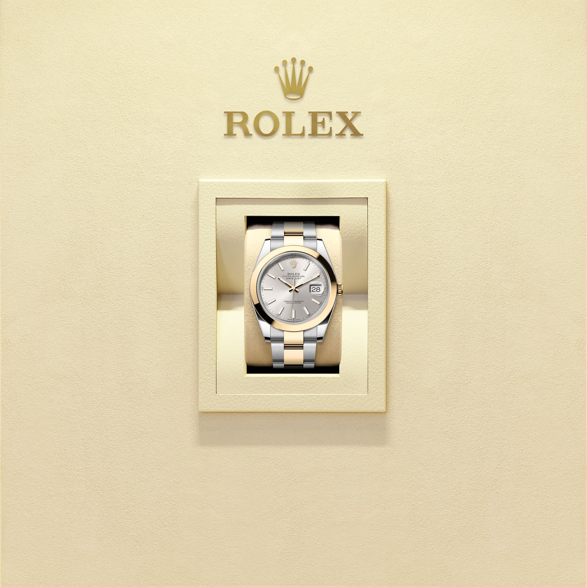 Oyster Perpetual Datejust 41 in acciaio Oystersteel e oro giallo con quadrante argentato e bracciale Oyster.