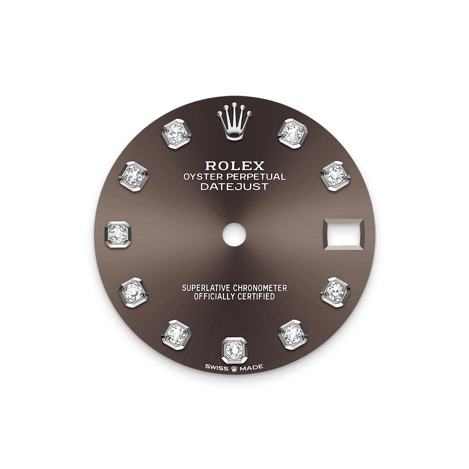 Il quadrante presenta diamanti in castoni d’oro 18 ct. La finitura soleil crea delicati riflessi di luce su molti quadranti della collezione Oyster Perpetual. Per ottenerla, si fa ricorso a sapienti tecniche di spazzolatura che producono lievi scanalature che si diramano dal centro del quadrante verso l’esterno.