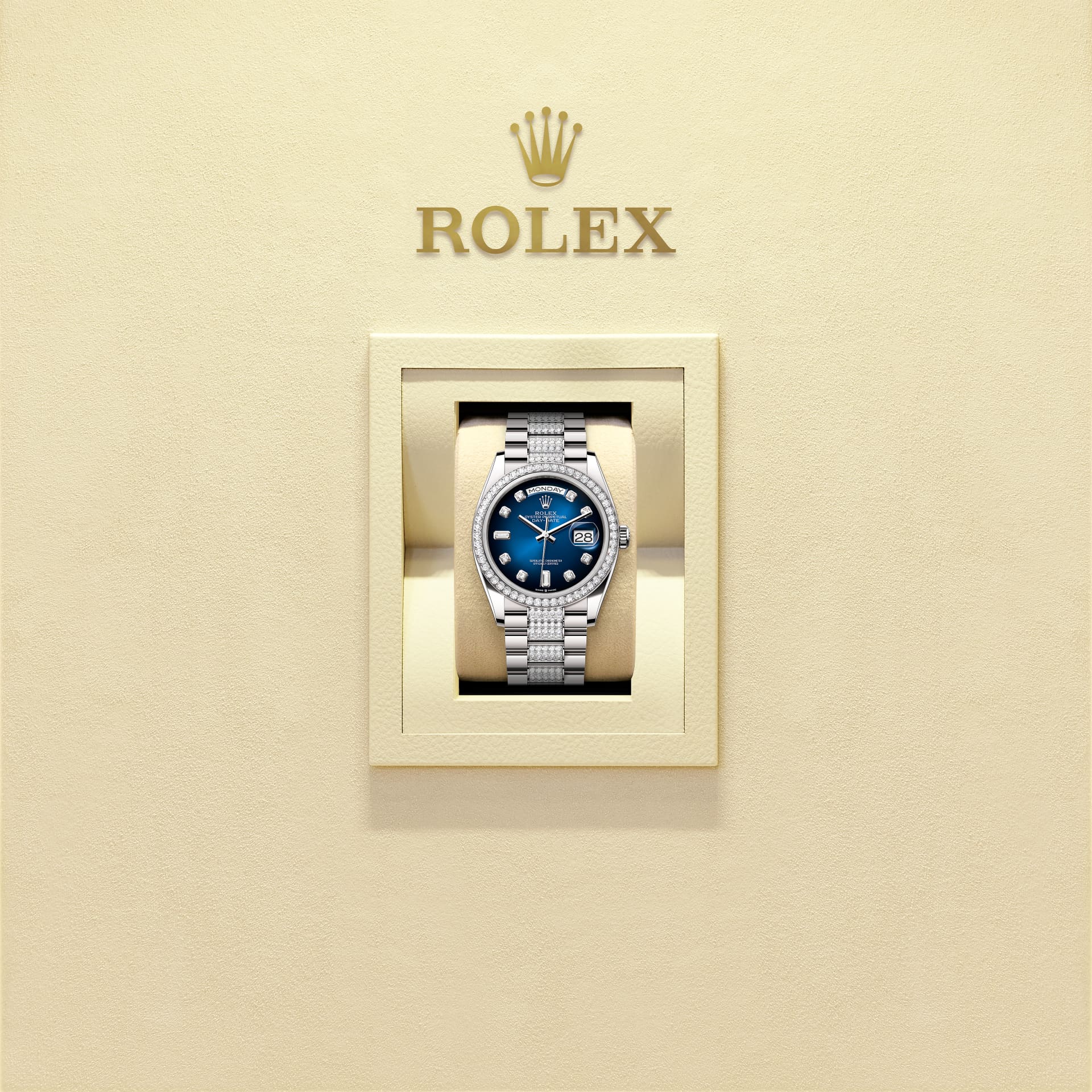 La loro bellezza impeccabile, invece, è garantita dagli attenti controlli estetici effettuati personalmente dagli orologiai Rolex su ogni componente dell’orologio. Il bracciale President a tre elementi semicircolari è stato creato nel 1956 in occasione del lancio dell’Oyster Perpetual Day‑Date. Capolavoro di eleganza e comfort, è realizzato con materiali preziosi accuratamente selezionati.