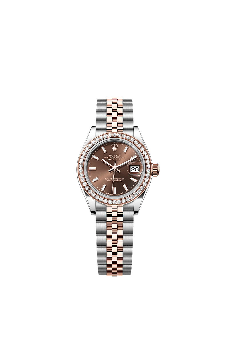 Lady-DatejustOyster, 28 mm, acciaio Oystersteel, oro Everose e diamantiReferenza 279381RBR