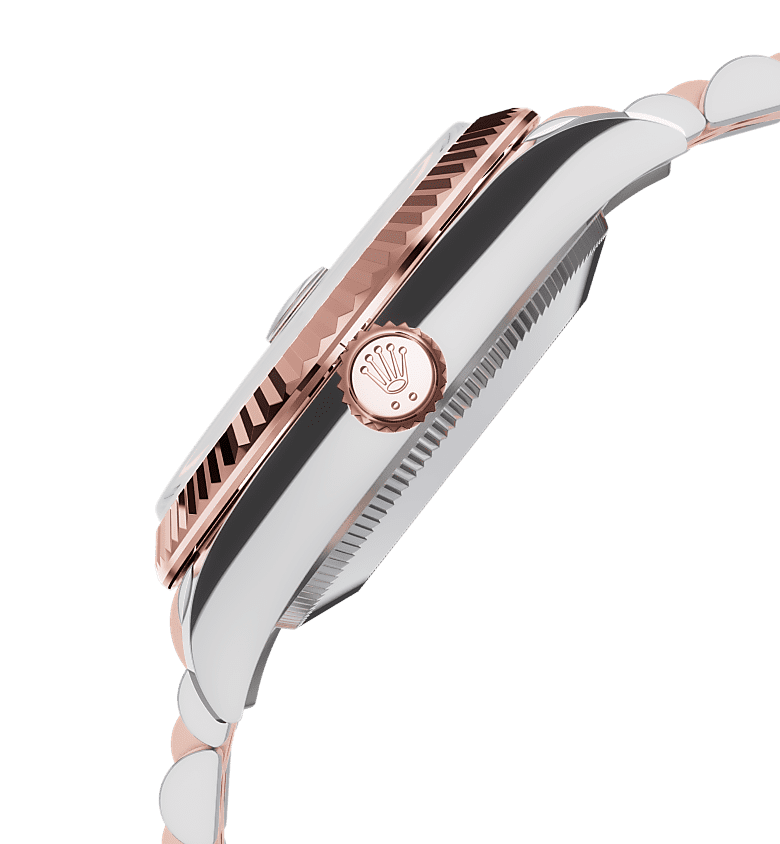 したがって、その刻みはバックケースにも施されており、防水性能の維持という同じ理由で、ロレックス独自のツールを用いてケースにねじ込まれていた。時を経て、ベゼルの刻みはデザインの要素となり、ロレックスのシンボルとなった。現在、フルーテッドベゼルは卓越性の象徴であり、このデイトジャスト 31ではゴールドで製造されている。