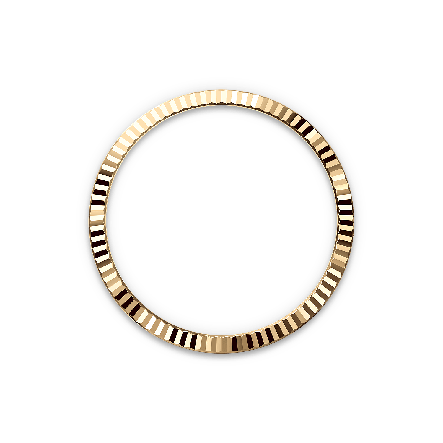 したがって、その刻みはバックケースにも施されており、防水性能の維持という同じ理由で、ロレックス独自のツールを用いてケースにねじ込まれていた。時を経て、ベゼルの刻みはデザインの要素となり、ロレックスのシンボルとなった。現在、フルーテッドベゼルは卓越性の象徴であり、このデイデイト 36ではゴールドで製造されている。