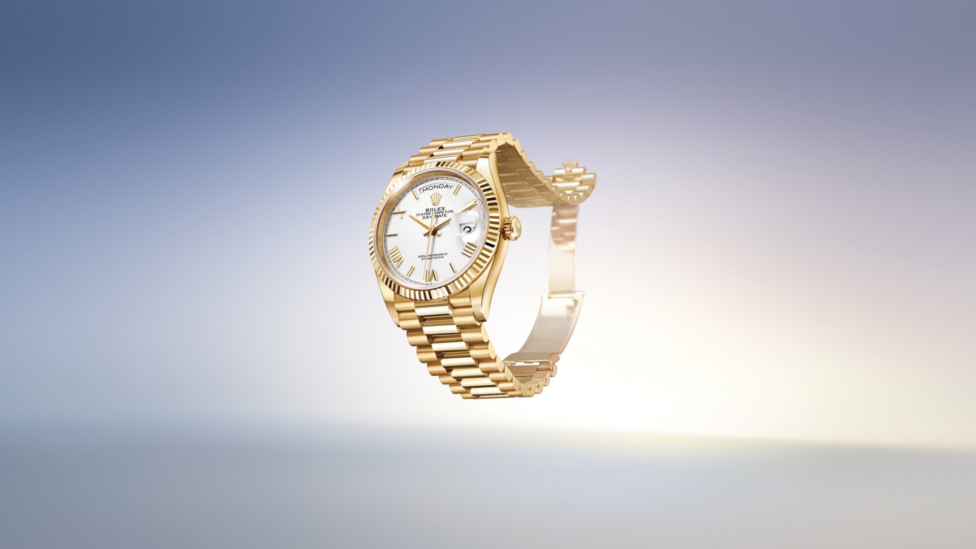 また、すべての時計の部品と同様に、人間の目による検査によって、完璧な美しさが保証されている。 半円形の3列リンクのプレジデントブレスレットは、1956年に登場したオイスター パーペチュアル デイデイトの発売に合わせて発表された。厳選された貴金属を素材とし、究極の気品を漂わせながら快適な装着感を提供する。